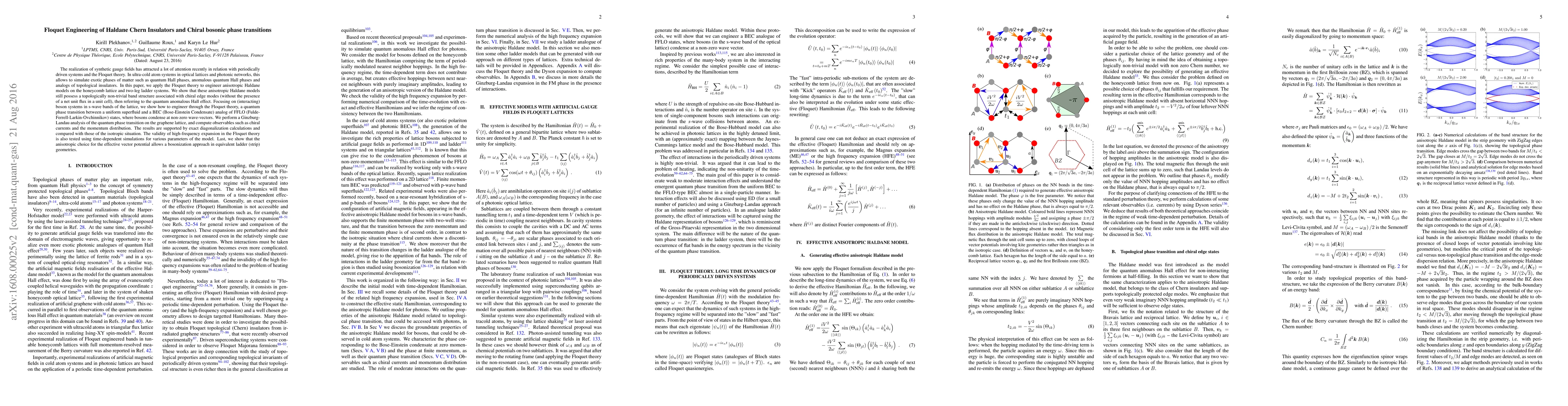 The realization of synthetic gauge fields has attracted a lot of attention recently in relation with periodically driven systems and the Floquet theory. In ultra-cold atom systems in optical lattices and photonic networks, this allows to simulate exotic phases of matter such as quantum Hall phases, anomalous quantum Hall phases and analogs of topological insulators. In this paper, we apply the Floquet theory to engineer anisotropic Haldane models on the honeycomb lattice and two-leg ladder systems. We show that these anisotropic Haldane models still possess a topologically non-trivial band structure associated with chiral edge modes (without the presence of a net unit flux in a unit cell), then referring to the quantum anomalous Hall effect. Focusing on (interacting) boson systems in s-wave bands of the lattice, we show how to engineer through the Floquet theory, a quantum phase transition between a uniform superfluid and a BEC (Bose-Einstein Condensate) analog of FFLO (Fulde-Ferrell-Larkin-Ovchinnikov) states, where bosons condense at non-zero wave-vectors. We perform a Ginzburg-Landau analysis of the quantum phase transition on the graphene lattice, and compute observables such as chiral currents and the momentum distribution. The results are supported by exact diagonalization calculations and compared with those of the isotropic situation. The validity of high-frequency expansion in the Floquet theory is also tested using time-dependent simulations for various parameters of the model. Last, we show that the anisotropic choice for the effective vector potential allows a bosonization approach in equivalent ladder (strip) geometries.