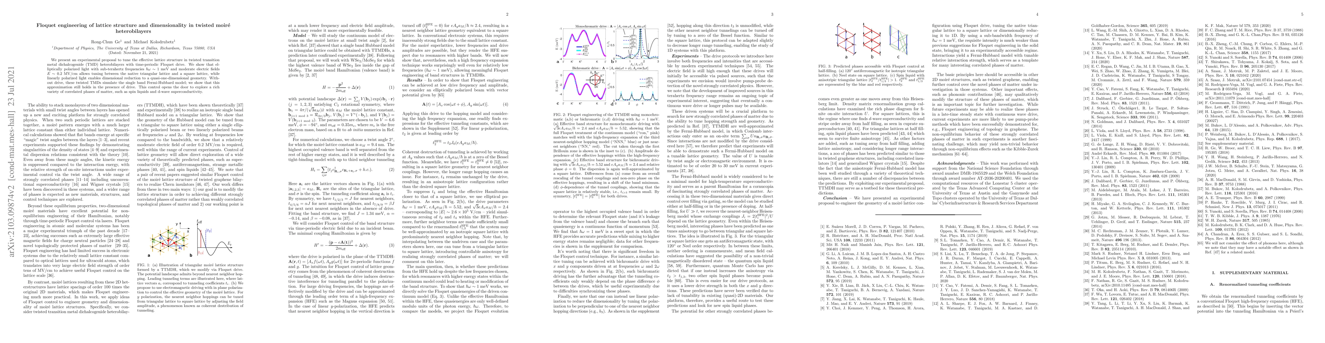 We present an experimental proposal to tune the effective lattice structure in twisted transition metal dichalcogenide (TMD) heterobilayers with time-periodic Floquet drive. We show that elliptically polarized light with sub-terahertz frequencies $\hbar\omega\sim 1$ meV and moderate electric fields $E\sim0.2$~MV/cm allows tuning between the native triangular lattice and a square lattice, while linearly polarized light enables dimensional reduction to a quasi-one-dimensional geometry. Without drive, these twisted TMDs simulate the single band Fermi-Hubbard model; we show that this approximation still holds in the presence of drive. This control opens the door to explore a rich variety of correlated phases of matter, such as spin liquids and d-wave superconductivity.