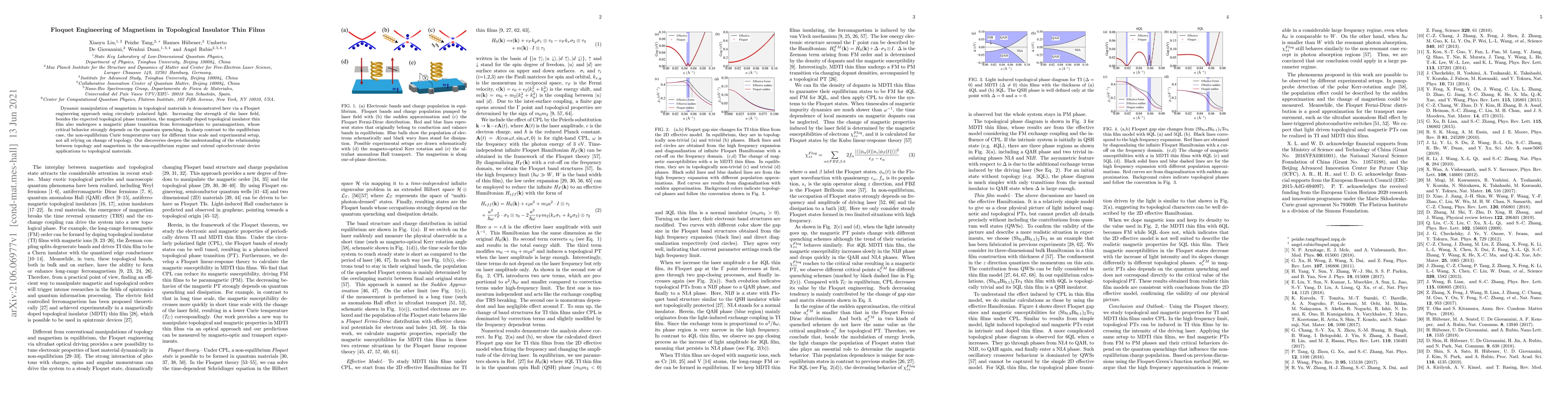 This paper demonstrates the dynamic manipulation of magnetism in topological insulator thin films using Floquet engineering with circularly polarized light, revealing a magnetic phase transition from ferromagnetism to paramagnetism under varying laser field strengths. The study highlights the complex interplay between non-equilibrium quantum dynamics and magnetism, extending optoelectronic applications to topological materials.