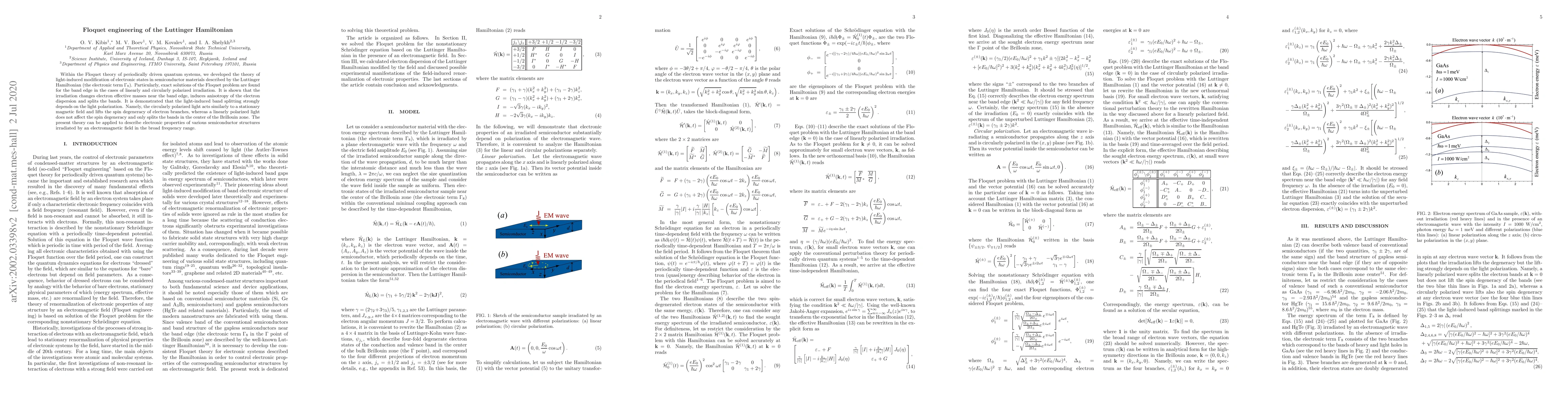 Within the Floquet theory of periodically driven quantum systems, we developed the theory of light-induced modification of electronic states in semiconductor materials described by the Luttinger Hamiltonian (the electronic term $\Gamma_8$). Particularly, exact solutions of the Floquet problem are found for the band edge in the cases of linearly and circularly polarized irradiation. It is shown that the irradiation changes electron effective masses near the band edge, induces anisotropy of the electron dispersion and splits the bands. It is demonstrated that the light-induced band splitting strongly depends on the light polarization. Namely, the circularly polarized light acts similarly to a stationary magnetic field and lifts the spin degeneracy of electron branches, whereas a linearly polarized light does not affect the spin degeneracy and only splits the bands in the center of the Brillouin zone. The present theory can be applied to describe electronic properties of various semiconductor structures irradiated by an electromagnetic field in the broad frequency range.