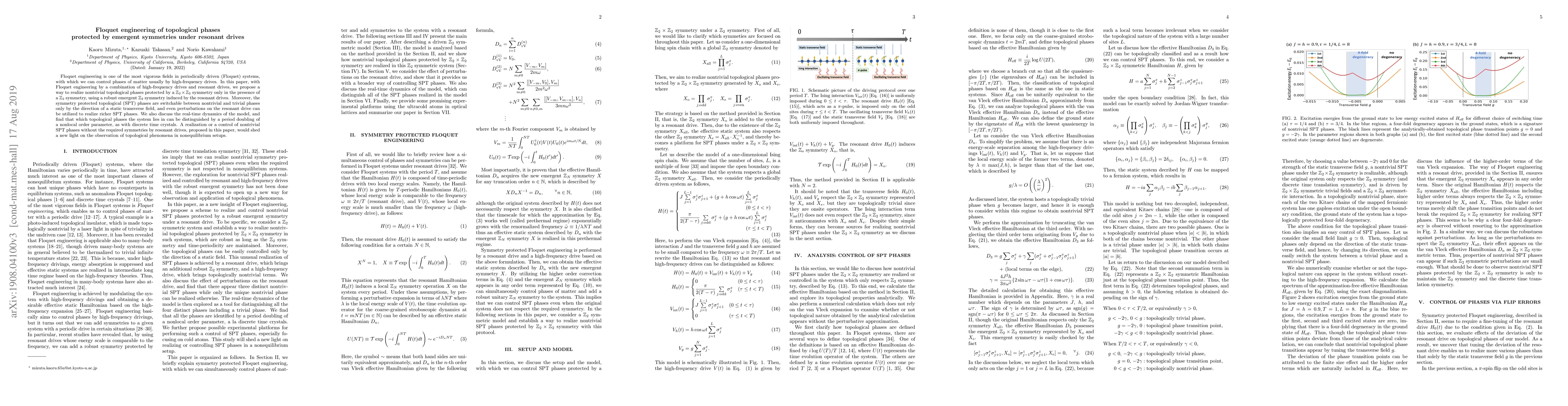 This paper proposes a method using Floquet engineering with resonant drives to realize topological phases protected by emergent symmetries, switching between nontrivial and trivial phases via a static field. The study highlights the potential for observing topological phenomena in nonequilibrium systems without traditional symmetries.