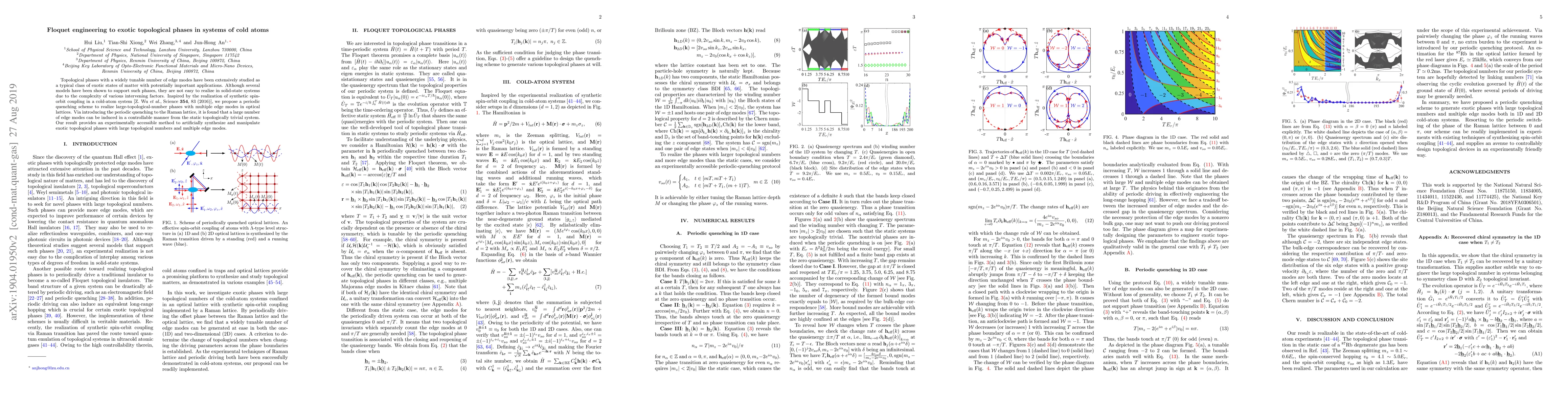 This paper proposes a periodic quenching scheme in optical lattices of cold atoms to realize exotic topological phases with a tunable number of edge modes, offering a controllable method to synthesize and manipulate these states for potential applications. This approach provides an experimentally accessible route to create large-topological-number phases in cold-atom systems.