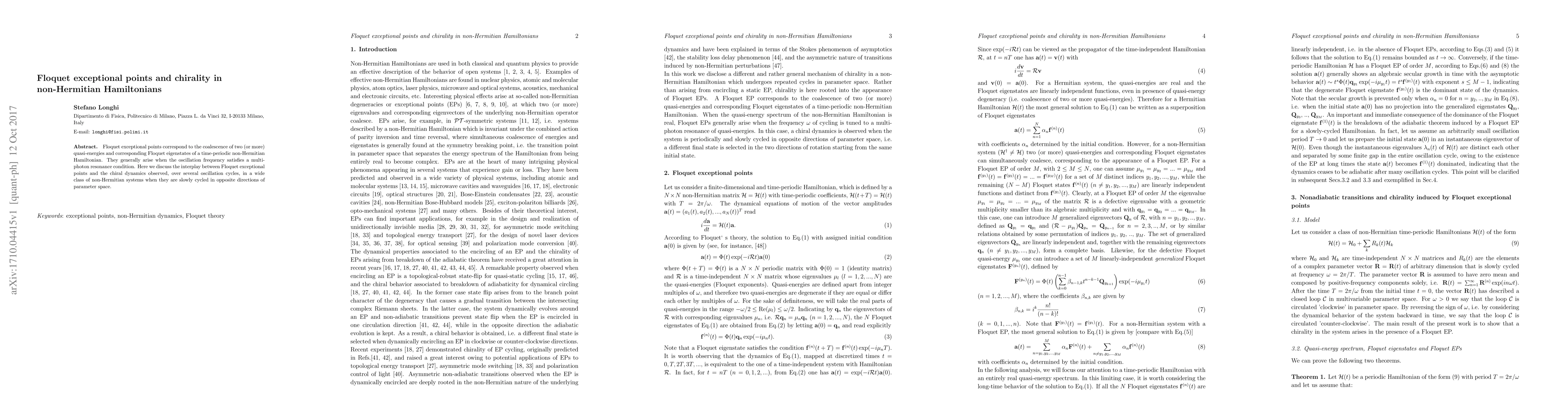 Summary: This paper investigates how Floquet exceptional points, where quasi-energies and eigenstates converge in time-periodic non-Hermitian Hamiltonians, relate to chiral dynamics, highlighting their emergence during parameter space cycling in such systems. The study focuses on the resonance conditions that lead to these points and their impact on system dynamics.