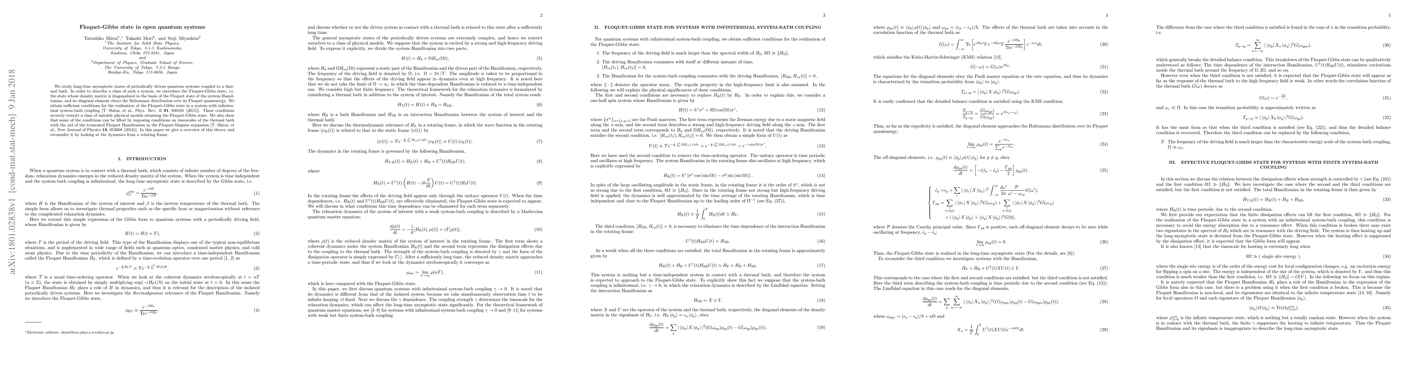 We study long-time asymptotic states of periodically driven quantum systems coupled to a thermal bath. In order to describe a class of such a system, we introduce the Floquet-Gibbs state, i.e. the state whose density matrix is diagonalized in the basis of the Floquet state of the system Hamiltonian, and its diagonal element obeys the Boltzmann distribution over its Floquet quasienergy. We obtain sufficient conditions for the realization of the Floquet-Gibbs state in a system with infinitesimal system-bath coupling [T. Shirai, et al., Phys. Rev. E 91, 030101 (2015)]. These conditions severely restrict a class of suitable physical models attaining the Floquet-Gibbs state. We also show that some of the conditions can be lifted by imposing conditions on timescales of the thermal bath with the aid of the truncated Floquet Hamiltonian in the Floquet-Magnus expansion [T. Shirai, et al., New Journal of Physics 18, 053008 (2016)]. In this paper we give a overview of this theory and reconsider it by looking at the dynamics from a rotating frame.