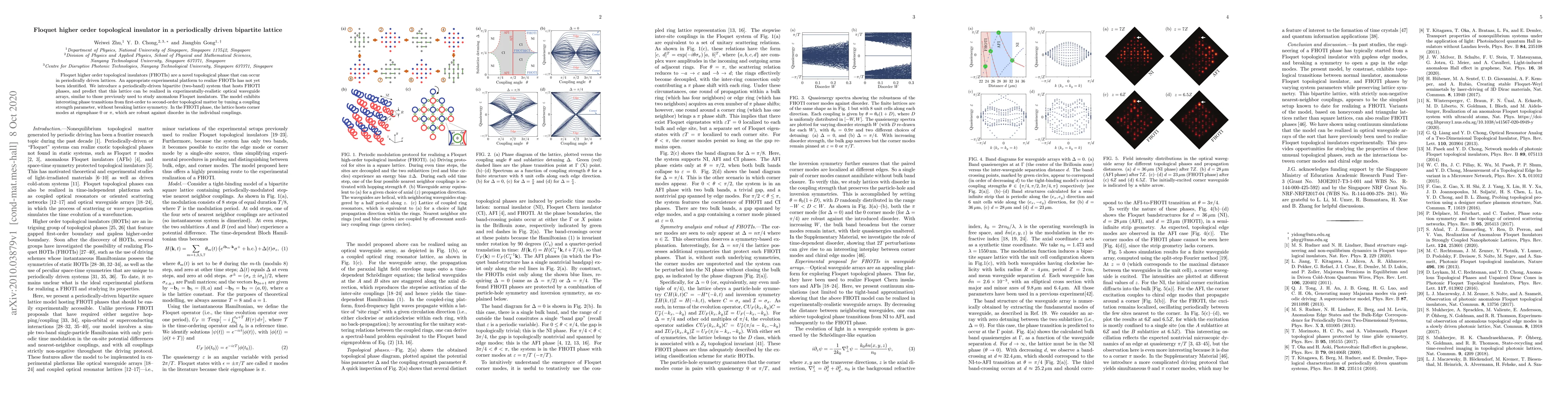 This paper introduces a periodically driven bipartite lattice that realizes Floquet higher order topological insulator (FHOTI) phases, predicted to be feasible in optical waveguide arrays. The model demonstrates phase transitions between first-order and second-order topological phases by adjusting a coupling strength, maintaining lattice symmetry, and featuring robust corner modes at eigenphases $0$ or $\pi$.