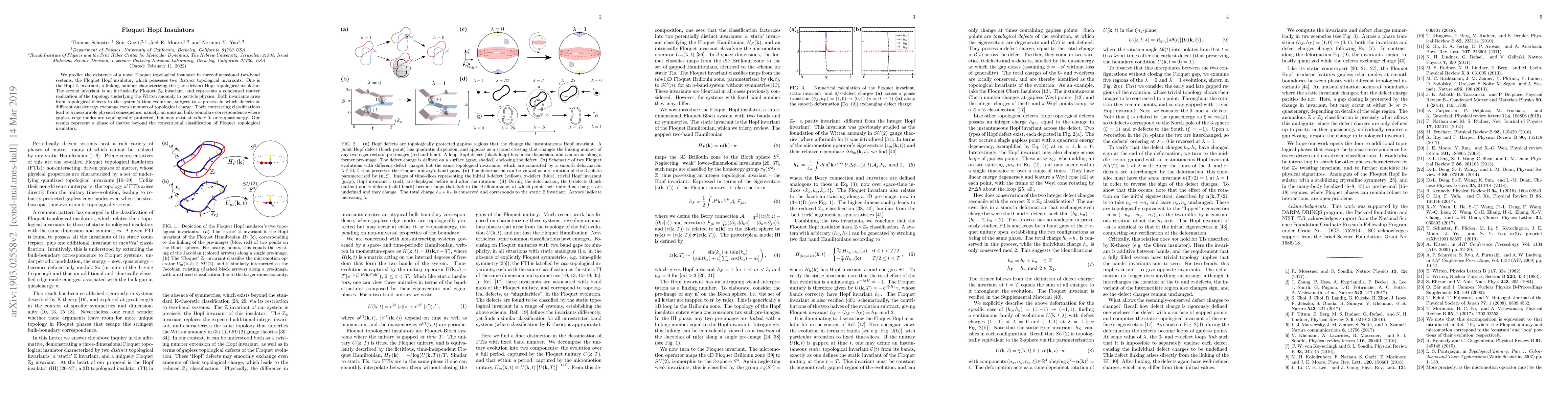 We predict the existence of a novel Floquet topological insulator in three-dimensional two-band systems, the Floquet Hopf insulator, which possesses two distinct topological invariants. One is the Hopf $\mathbb{Z}$ invariant, a linking number characterizing the (non-driven) Hopf topological insulator. The second invariant is an intrinsically Floquet $\mathbb{Z}_2$ invariant, and represents a condensed matter realization of the topology underlying the Witten anomaly in particle physics. Both invariants arise from topological defects in the system's time-evolution, subject to a process in which defects at different quasienergy exchange even amounts of topological charge. Their contrasting classifications lead to a measurable physical consequence, namely, an unusual bulk-boundary correspondence where gapless edge modes are topologically protected, but may exist at either 0- or $\pi$-quasienergy. Our results represent a phase of matter beyond the conventional classification of Floquet topological insulators.