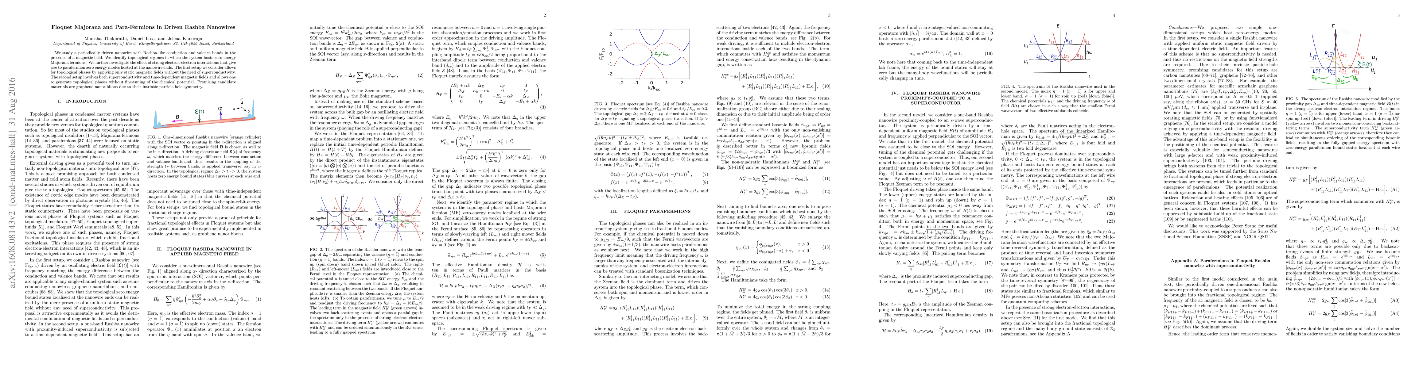 This research identifies topological regimes in driven Rashba nanowires hosting zero-energy Majorana fermions, even without superconductivity or fine-tuned chemical potentials. It also explores how electron-electron interactions generate parafermion zero modes at the nanowire ends, suggesting graphene nanoribbons as promising candidates due to their particle-hole symmetry.