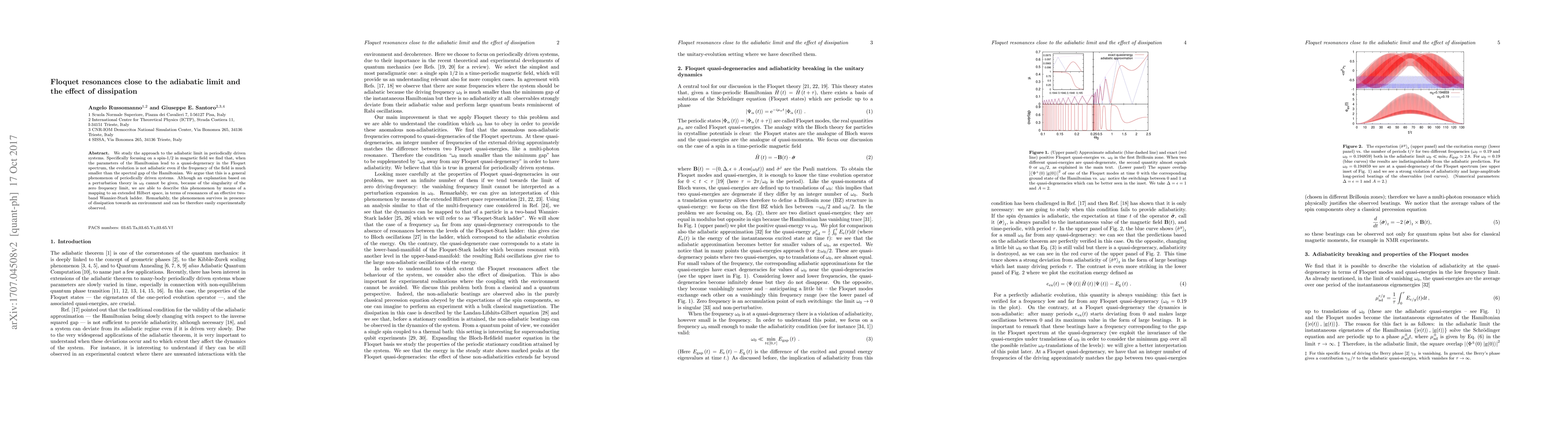 This research identifies non-adiabatic evolution in spin-1/2 systems under periodic magnetic fields, even with frequencies much smaller than the gap, due to quasi-degeneracies in the Floquet spectrum. The phenomenon, explained via a mapping to an extended Hilbert space and effective two-band Wannier-Stark ladder resonances, persists under dissipation, enabling potential experimental observation.