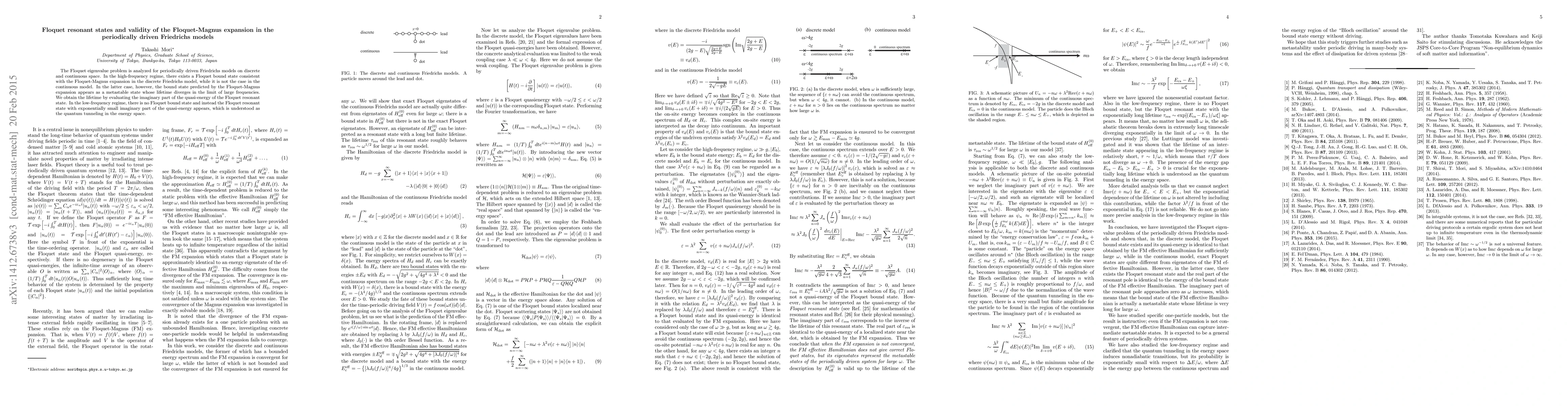 The Floquet eigenvalue problem is analyzed for periodically driven Friedrichs models on discrete and continuous space. In the high-frequency regime, there exists a Floquet bound state consistent with the Floquet-Magnus expansion in the discrete Friedrichs model, while it is not the case in the continuous model. In the latter case, however, the bound state predicted by the Floquet-Magnus expansion appears as a metastable state whose lifetime diverges in the limit of large frequencies. We obtain the lifetime by evaluating the imaginary part of the quasi-energy of the Floquet resonant state. In the low-frequency regime, there is no Floquet bound state and instead the Floquet resonant state with exponentially small imaginary part of the quasi-energy appears, which is understood as the quantum tunneling in the energy space.