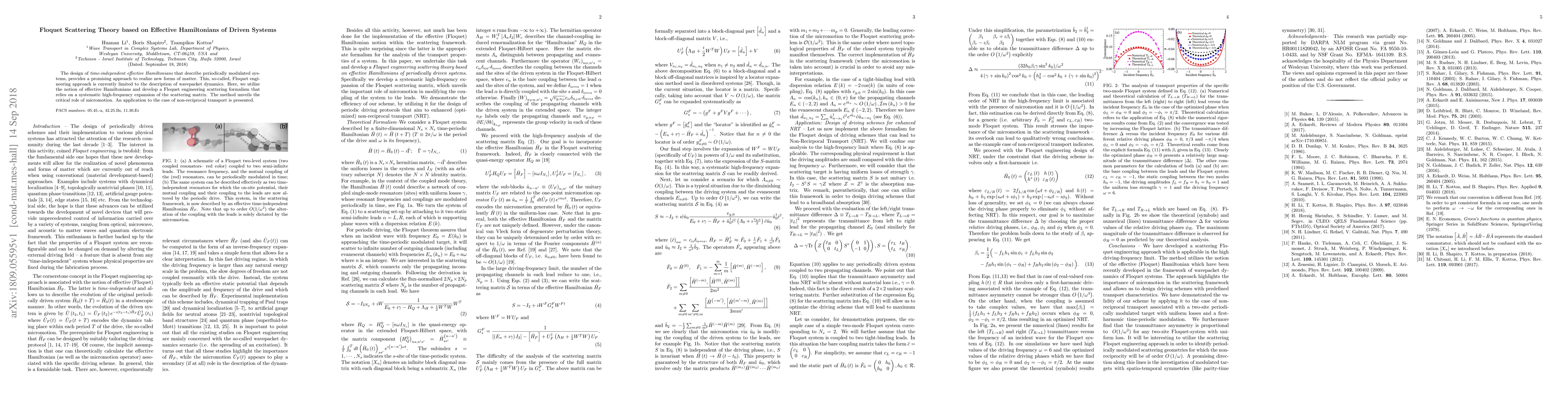 This paper develops a Floquet scattering theory based on effective Hamiltonians for periodically modulated systems, introducing a formalism that leverages high-frequency expansion of the scattering matrix. The method highlights the importance of micromotion and applies to non-reciprocal transport scenarios.