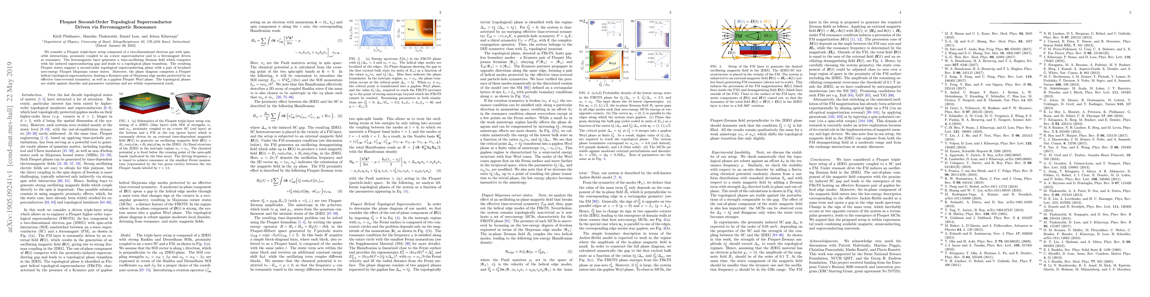 This paper explores a Floquet triple-layer system with a two-dimensional electron gas, an s-wave superconductor, and a ferromagnet driven at resonance. The system exhibits a second-order topological superconducting phase with localized zero-energy Majorana corner states, alongside a helical topological superconductor and a gapless Weyl phase, all stable against disorder and experimentally feasible.