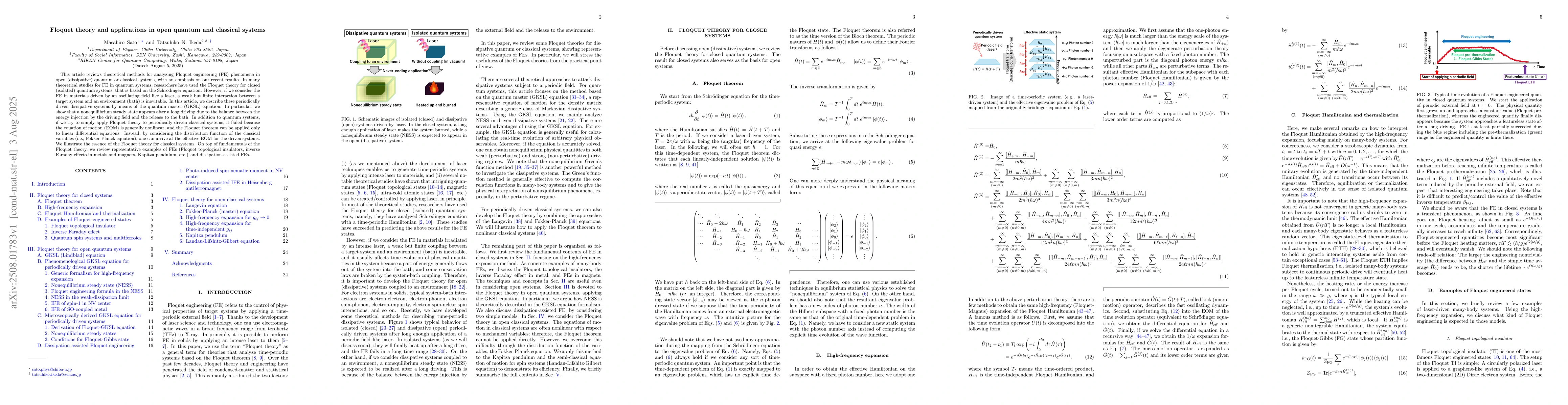 The paper reviews Floquet theory for open quantum and classical systems, focusing on dissipative systems described by the GKSL equation. It discusses nonequilibrium steady states (NESS) in high-frequency regimes and compares Floquet engineering (FE) in closed and open systems.