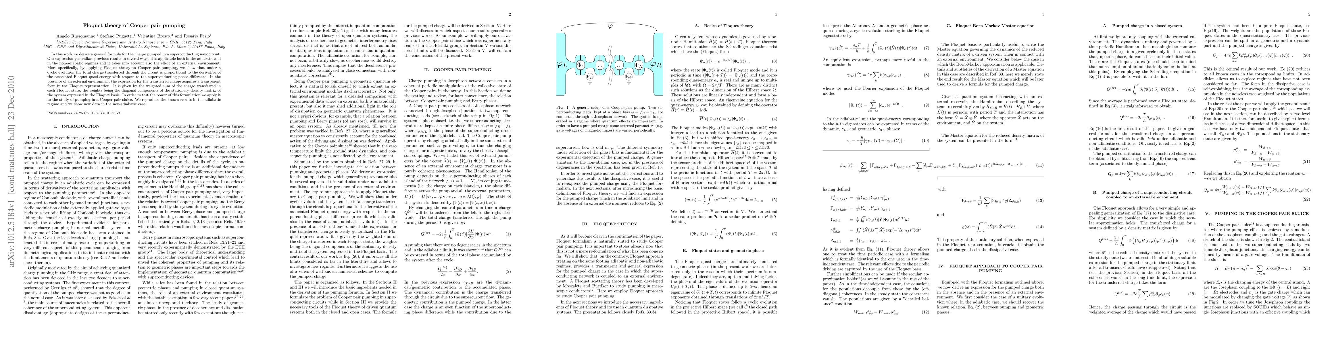 This paper derives a generalized formula for charge pumping in superconducting nanocircuits using Floquet theory, applicable in both adiabatic and non-adiabatic regimes. It shows the total charge transferred is proportional to the derivative of the Floquet quasi-energy with respect to the superconducting phase difference, and provides new insights into the effect of an external environment.