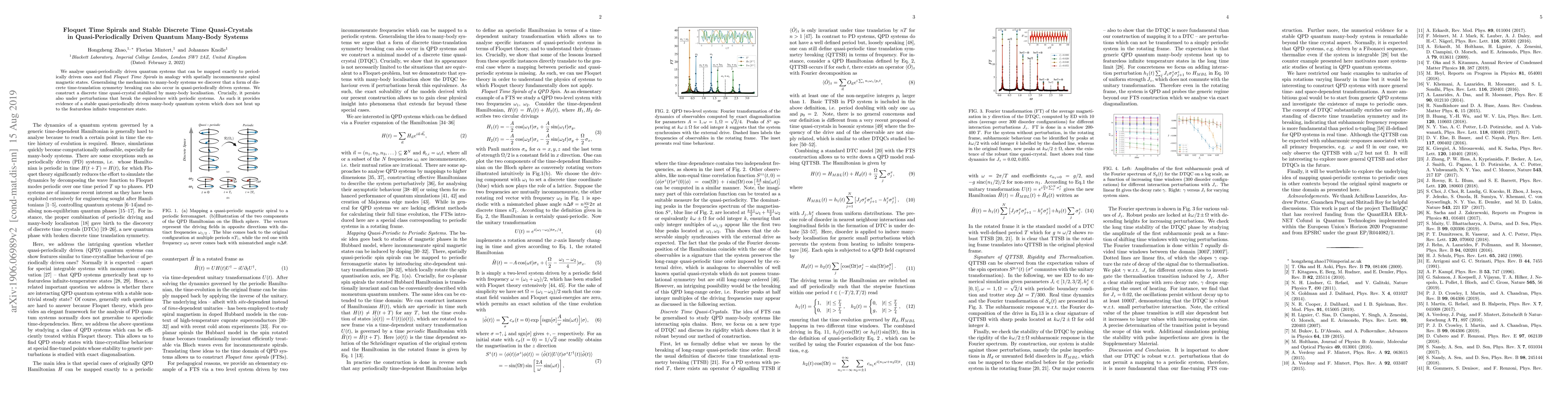 This paper investigates quasi-periodically driven quantum many-body systems, revealing the existence of Floquet Time Spirals and stable discrete time quasi-crystals. These findings demonstrate that quasi-periodically driven systems can exhibit stable, localised states that resist heating, even under perturbations.