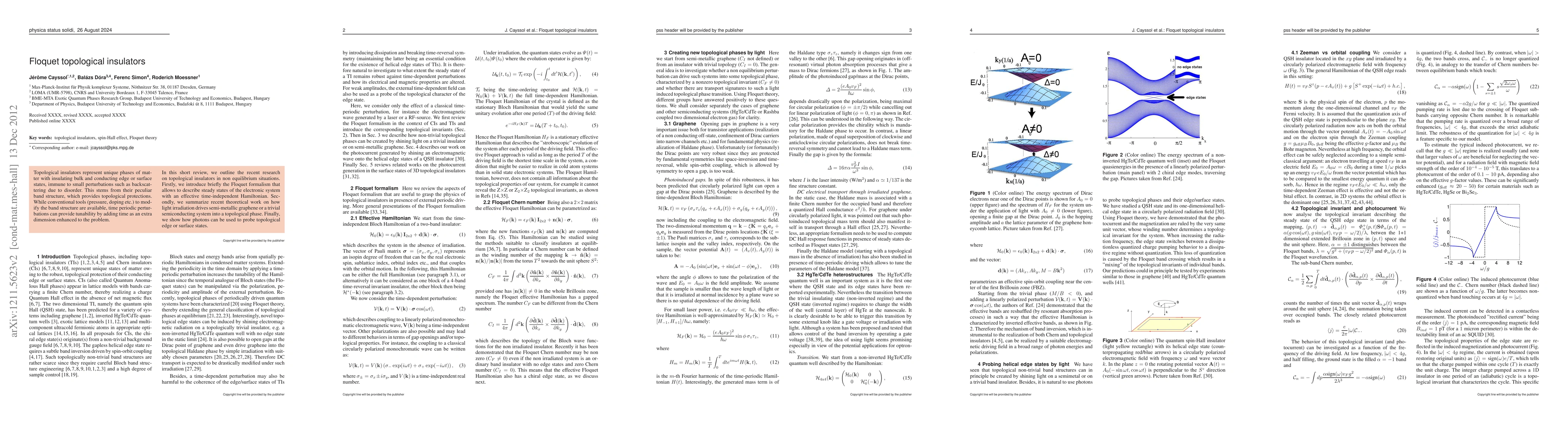 Title: Floquet Topological Insulators Summary: This review explores topological insulators under non-equilibrium conditions using time periodic perturbations, introducing the Floquet formalism and discussing how light can drive systems like graphene into topological phases and how photons probe these states.