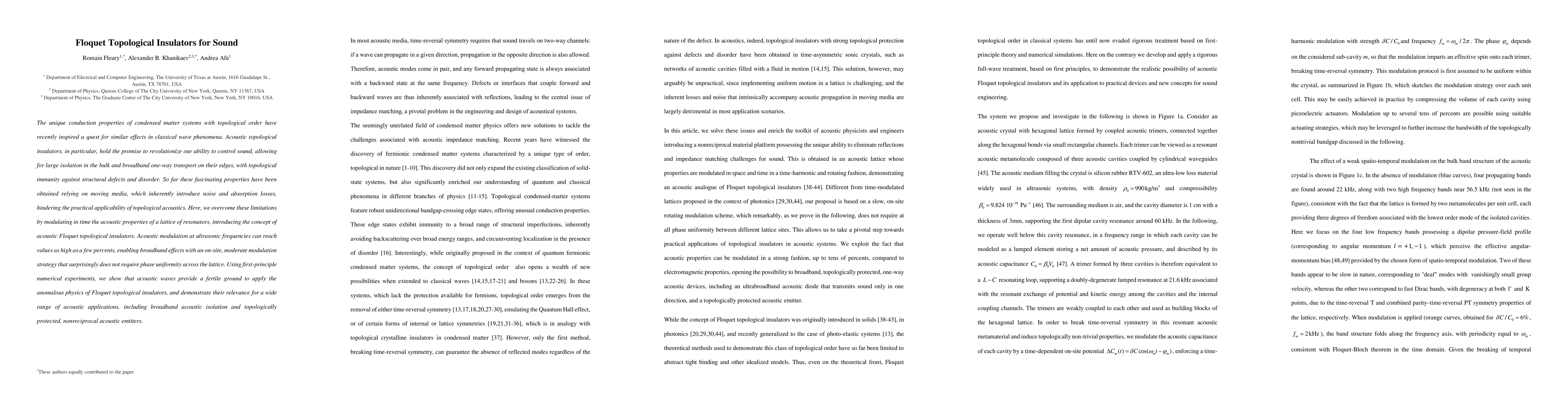 The paper presents a novel method for creating acoustic Floquet topological insulators through time-modulated lattices, showcasing broadband nonreciprocal response and robustness to imperfections, paving the way for new acoustic systems with topological insulator features.