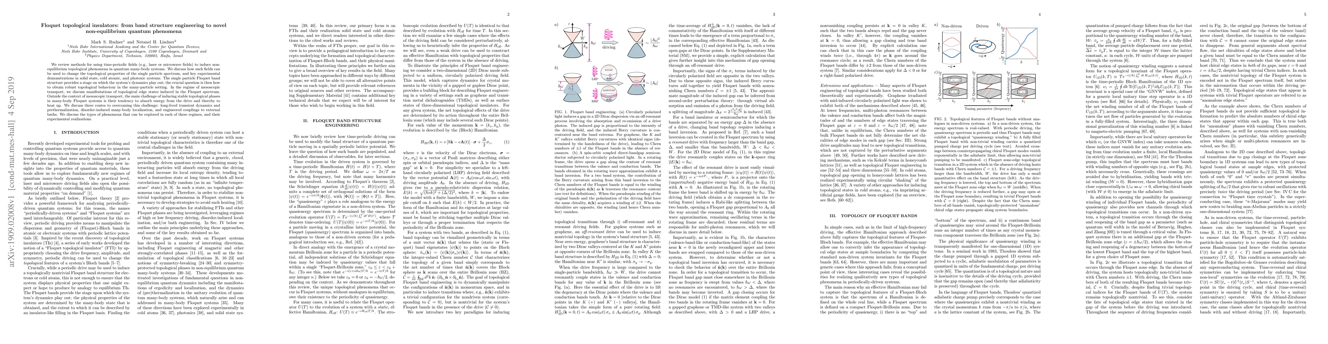 We review methods for using time-periodic fields (e.g., laser or microwave fields) to induce non-equilibrium topological phenomena in quantum many-body systems. We discuss how such fields can be used to change the topological properties of the single particle spectrum, and key experimental demonstrations in solid state, cold atomic, and photonic systems. The single particle Floquet band structure provides a stage on which the system's dynamics play out; the crucial question is then how to obtain robust topological behaviour in the many-particle setting. In the regime of mesoscopic transport, we discuss manifestations of topological edge states induced in the Floquet spectrum. Outside the context of mesoscopic transport, the main challenge of inducing stable topological phases in many-body Floquet systems is their tendency to absorb energy from the drive and thereby to heat up. We discuss three routes to overcoming this challenge: long-lived transient dynamics and prethermalization, disorder-induced many-body localization, and engineered couplings to external baths. We discuss the types of phenomena that can be explored in each of these regimes, and their experimental realizations.