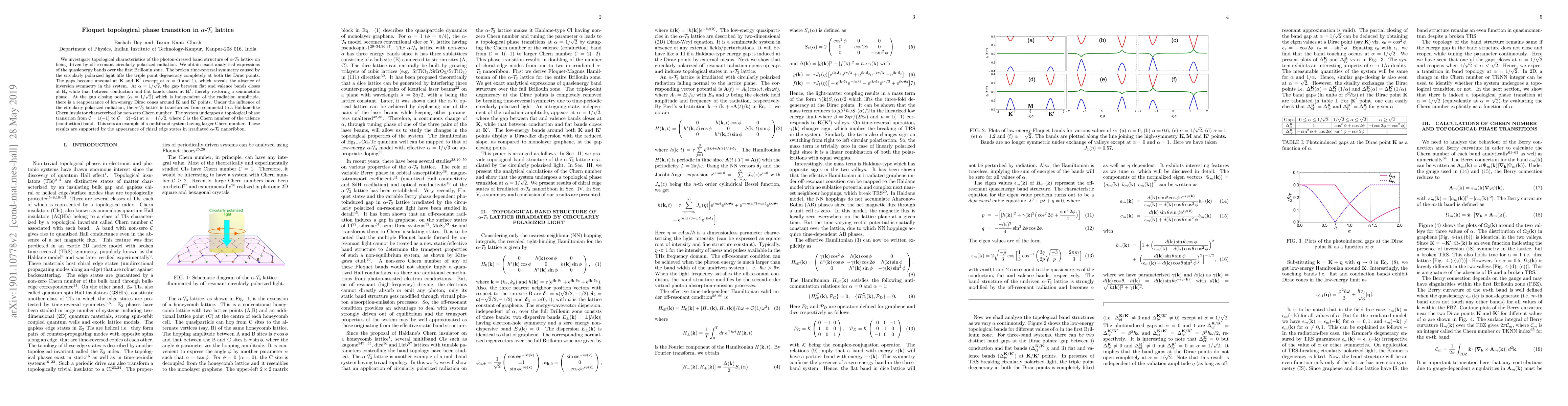 We investigate topological characteristics of the photon-dressed band structure of $\alpha$-$\mathcal{T}_3$ lattice on being driven by off-resonant circularly polarized radiation. We obtain exact analytical expressions of the quasienergy bands over the first Brillouin zone. The broken time-reversal symmetry caused by the circularly polarized light lifts the triple point degeneracy completely at both the Dirac points. The gaps become unequal at $ {\bf K}$ and ${\bf K}^{\prime}$ (except at $\alpha=0$ and 1), which reveals the absence of inversion symmetry in the system. At $\alpha=1/\sqrt{2}$, the gap between flat and valence bands closes at ${\bf K}$, while that between conduction and flat bands closes at ${\bf K}^{\prime}$, thereby restoring a semimetalic phase. At the gap closing point ($\alpha=1/\sqrt{2}$) which is independent of the radiation amplitude, there is a reappearance of low-energy Dirac cones around ${\bf K}$ and ${\bf K}^{\prime}$ points. Under the influence of the circularly polarized radiation, the $\alpha$-$\mathcal{T}_3$ lattice is transformed from semimetal to a Haldane-like Chern insulator characterized by non-zero Chern number. The system undergoes a topological phase transition from $\mathcal{C} = 1 (-1)$ to $\mathcal{C}=2 (-2)$ at $\alpha =1/\sqrt{2}$, where $\mathcal{C}$ is the Chern number of the valence (conduction) band. This sets an example of a multiband system having larger Chern number. These results are supported by the appearance of chiral edge states in irradiated $\alpha$-$\mathcal{T}_3$ nanoribbon.