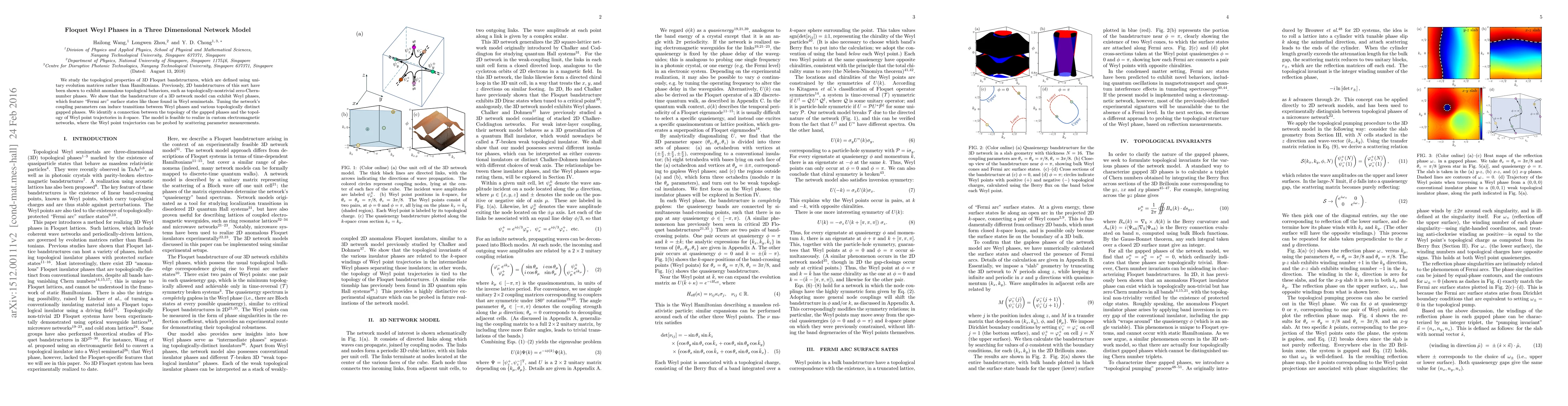 We study the topological properties of 3D Floquet bandstructures, which are defined using unitary evolution matrices rather than Hamiltonians. Previously, 2D bandstructures of this sort have been shown to exhibit anomalous topological behaviors, such as topologically-nontrivial zero-Chern-number phases. We show that the bandstructure of a 3D network model can exhibit Weyl phases, which feature "Fermi arc" surface states like those found in Weyl semimetals. Tuning the network's coupling parameters can induce transitions between Weyl phases and various topologically distinct gapped phases. We identify a connection between the topology of the gapped phases and the topology of Weyl point trajectories in k-space. The model is feasible to realize in custom electromagnetic networks, where the Weyl point trajectories can be probed by scattering parameter measurements.