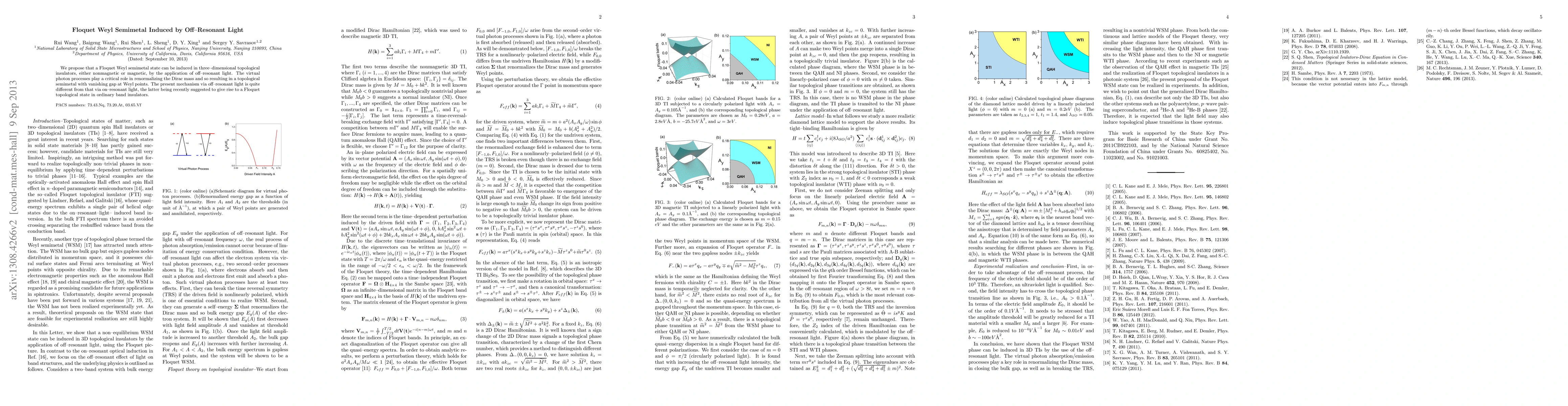 The research proposes a method to induce a Floquet Weyl semimetal state in 3D topological insulators using off-resonant light, emphasizing the role of virtual photon processes in renormalizing the Dirac mass and creating a topological semimetal with a vanishing gap at Weyl points. This mechanism differs from on-resonant light approaches used for ordinary band insulators.