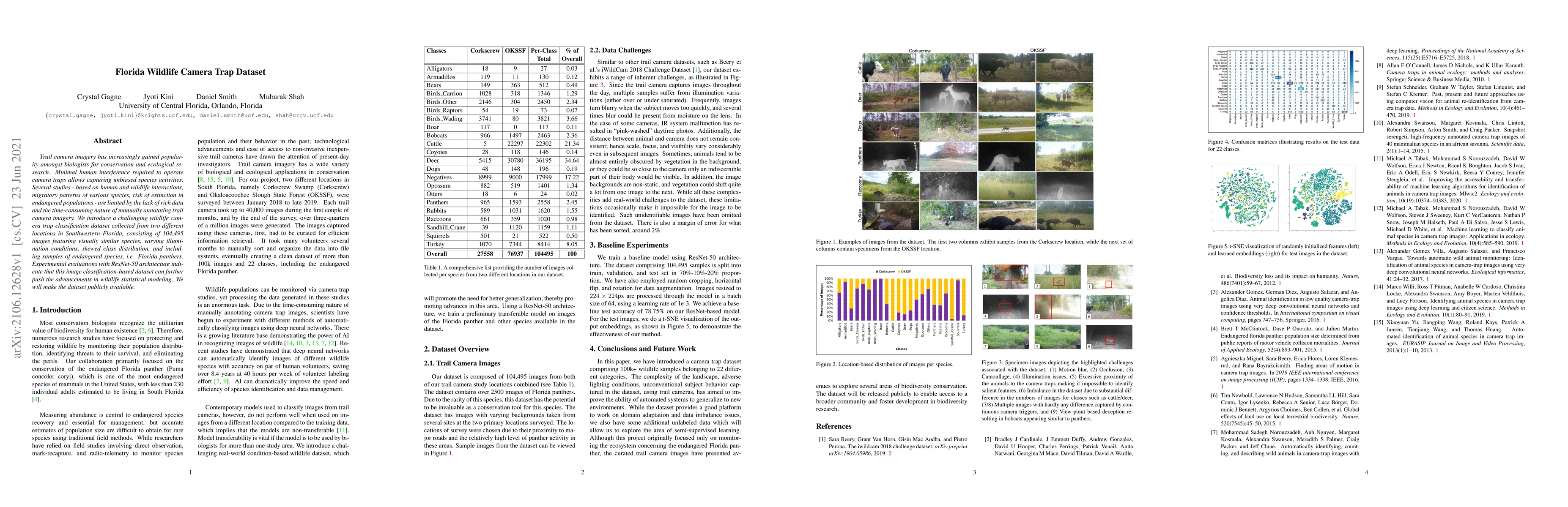 This paper introduces a large wildlife camera trap dataset from Florida, featuring 104,495 images to aid in conservation research. It aims to address the challenges of data scarcity and annotation effort, and will be publicly available to advance wildlife statistical modeling.