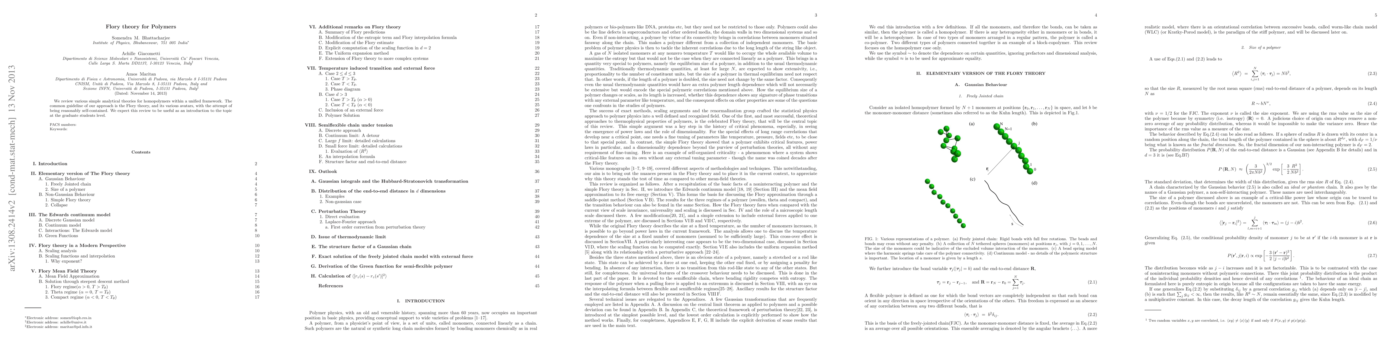 This paper reviews simple analytical theories for homopolymers using a unified framework centered on the Flory theory, aiming to introduce the topic to graduate students.