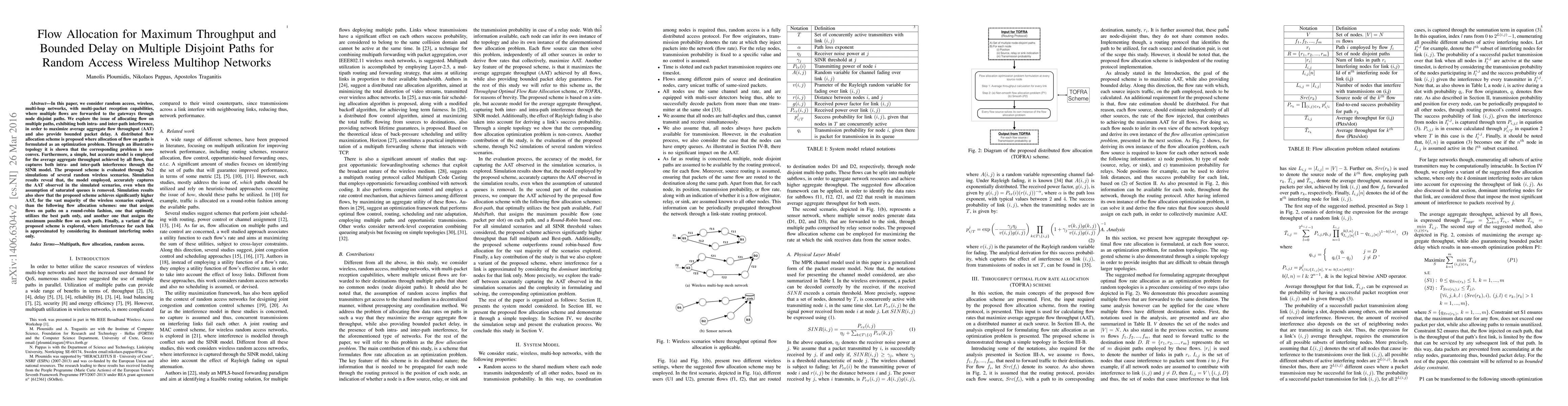 This paper proposes a distributed flow allocation scheme to maximize average aggregate throughput and bounded packet delay in random access wireless multi-hop networks with multiple disjoint paths. The scheme outperforms existing methods in most simulated scenarios, achieving significantly higher throughput while maintaining bounded delay.
