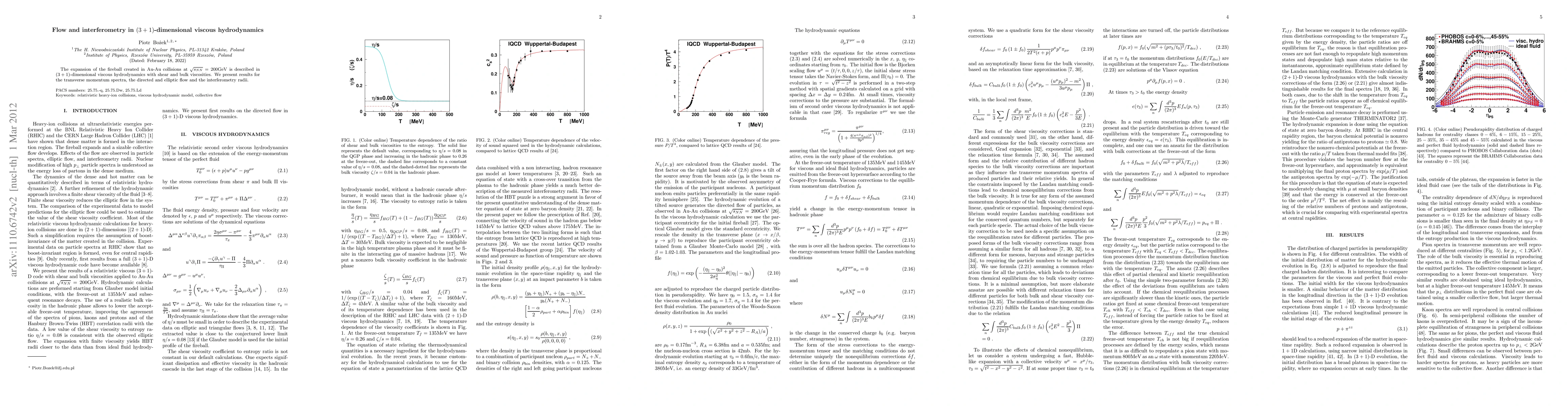 This paper investigates the expansion dynamics of the fireball from Au-Au collisions using 3+1 dimensional viscous hydrodynamics, focusing on shear and bulk viscosities. It reports findings on transverse momentum spectra, directed and elliptic flow, and interferometry radii.