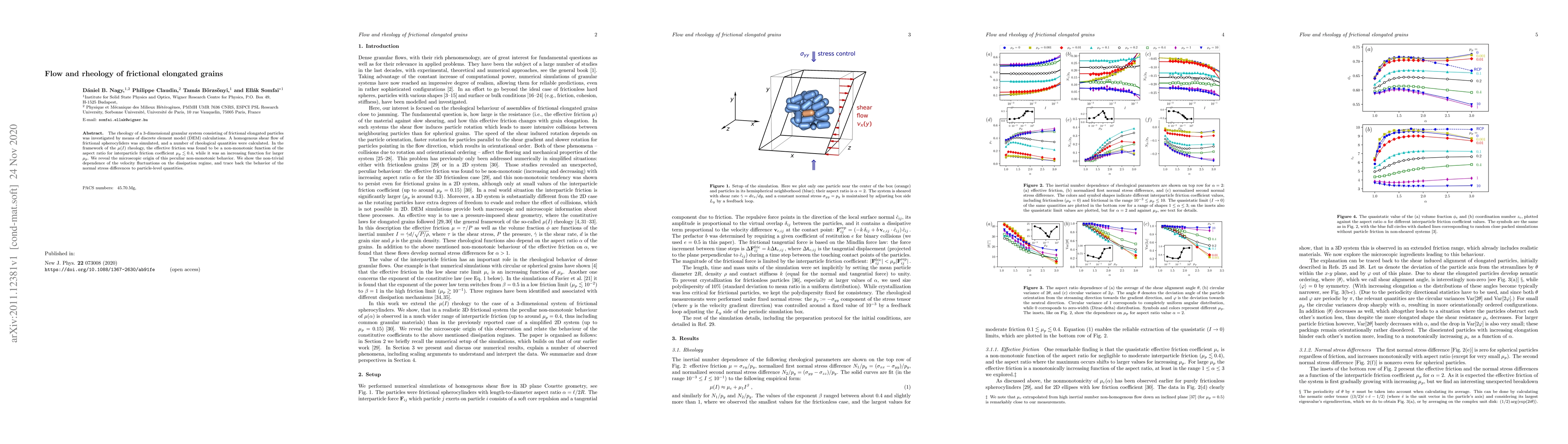 A study using discrete element modeling found that the frictional elongated grains exhibit non-monotonic behavior of effective friction with aspect ratio for a specific range of interparticle friction coefficients, and reveals its microscopic origin.