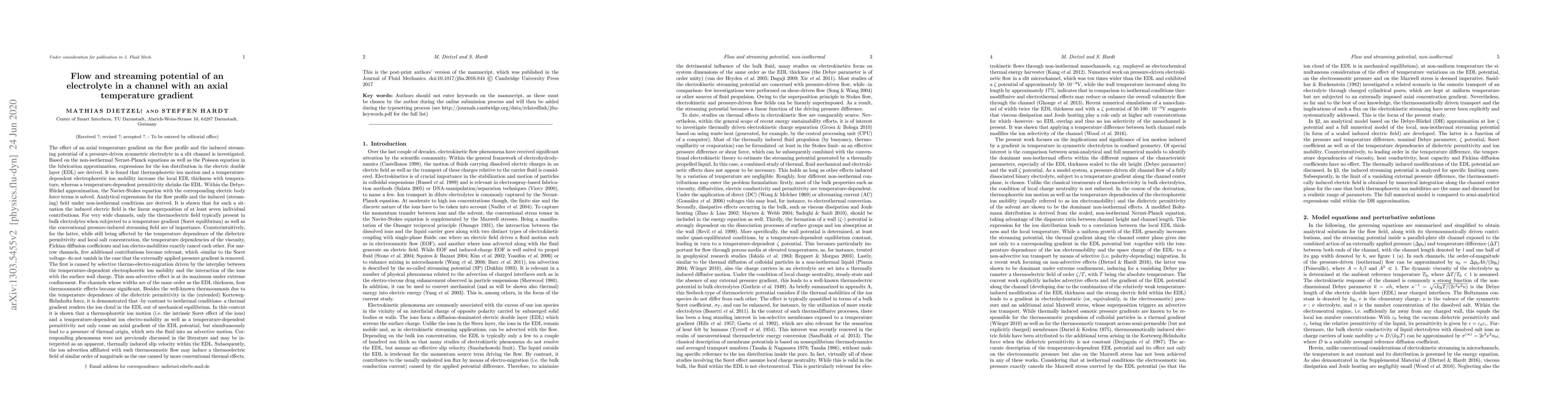 This paper investigates the impact of an axial temperature gradient on the flow profile and induced streaming potential in a slit channel filled with a pressure-driven symmetric electrolyte. The study derives analytical expressions for ion distribution and flow under non-isothermal conditions, revealing that various thermophoretic and electrophoretic effects influence the electric double layer's thickness and contribute to multiple components of the induced electric field.