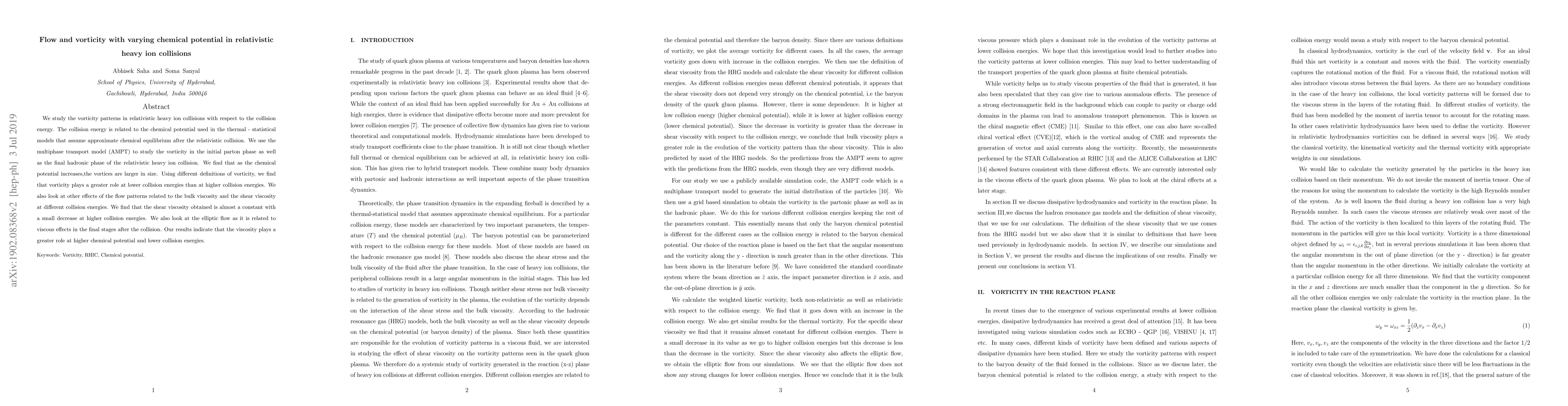 This study investigates the impact of varying chemical potential on vorticity patterns in relativistic heavy ion collisions using the AMPT model. It finds that increased chemical potential correlates with larger vortices and that vorticity is more significant at lower collision energies, while shear viscosity remains nearly constant with a slight decrease at higher energies.