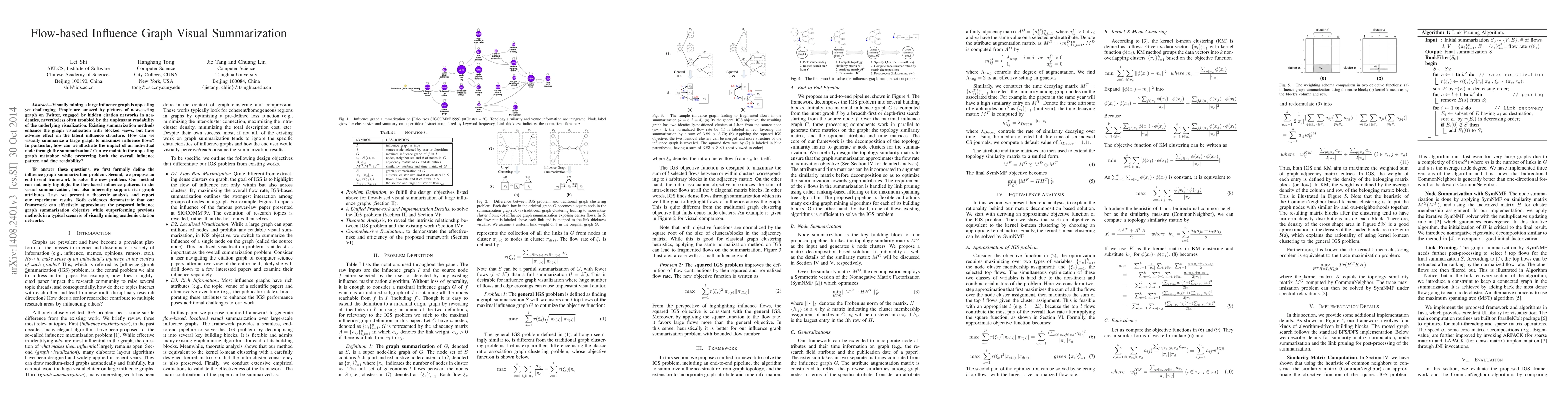 This paper proposes a framework for visually summarizing large influence graphs while maintaining readability and preserving the overall influence structure and individual node impact. The method highlights flow-based influence patterns and outperforms previous summarization techniques, particularly in academic citation networks.
