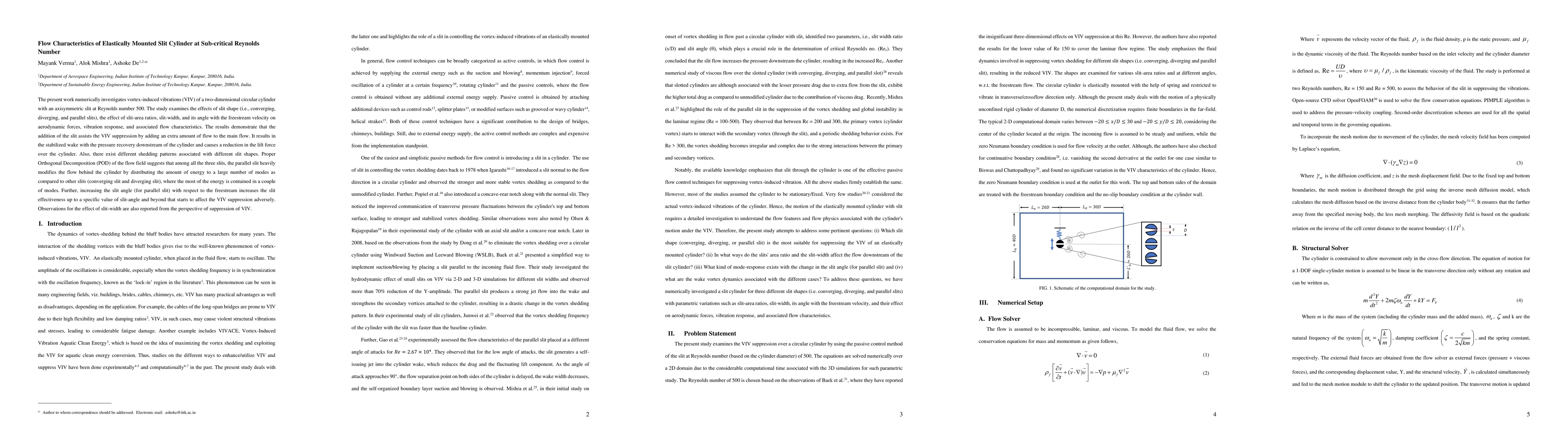 This paper numerically investigates vortex-induced vibrations (VIV) of a slit cylinder at Reynolds number 500, focusing on how slit shape, area ratios, width, and angle affect aerodynamic forces and flow characteristics. The results show that slits suppress VIV by stabilizing the wake and reducing lift, with parallel slits being most effective in distributing energy across multiple modes.