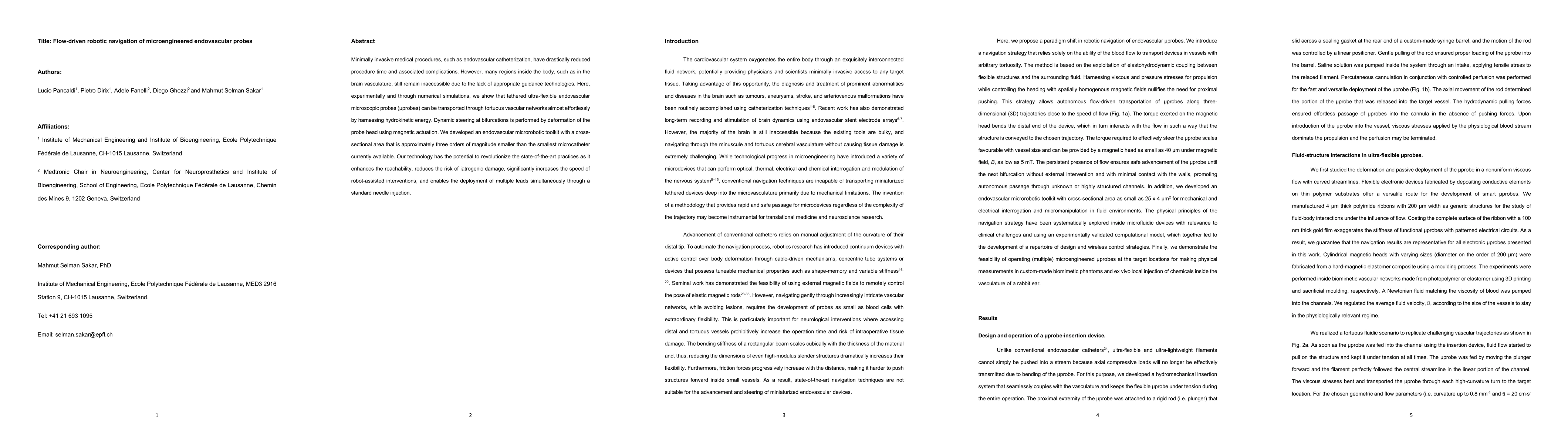 Minimally invasive medical procedures, such as endovascular catheterization, have drastically reduced procedure time and associated complications. However, many regions inside the body, such as in the brain vasculature, still remain inaccessible due to the lack of appropriate guidance technologies. Here, experimentally and through numerical simulations, we show that tethered ultra-flexible endovascular microscopic probes can be transported through tortuous vascular networks almost effortlessly by harnessing hydrokinetic energy. Dynamic steering at bifurcations is performed by deformation of the probe head using magnetic actuation. We developed an endovascular microrobotic toolkit with a cross-sectional area that is approximately three orders of magnitude smaller than the smallest microcatheter currently available. Our technology has the potential to revolutionize the state-of-the-art practices as it enhances the reachability, reduces the risk of iatrogenic damage, significantly increases the speed of robot-assisted interventions, and enables the deployment of multiple leads simultaneously through a standard needle injection.