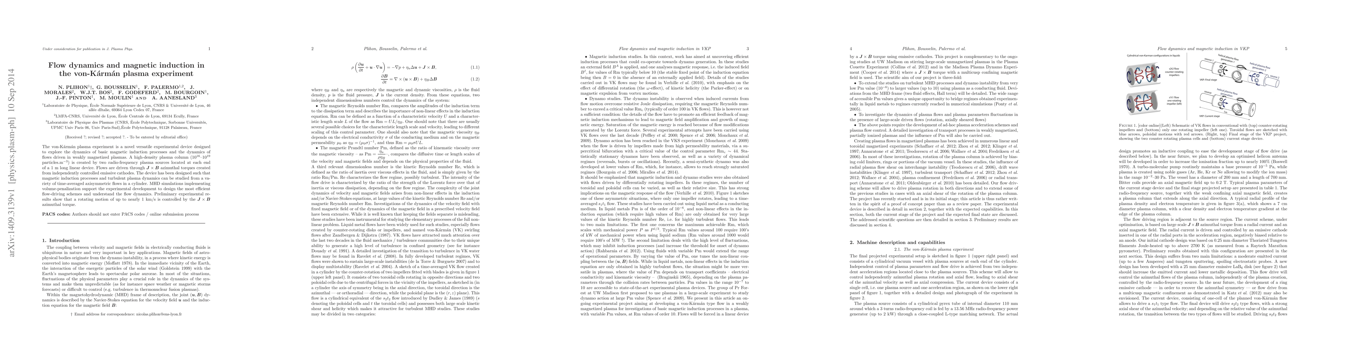 The von-Karman plasma experiment investigates magnetic induction and flow dynamics in weakly magnetized plasmas using high-density plasma columns and JxB azimuthal torques. Preliminary results demonstrate controlled rotating motions of nearly 1 km/s.