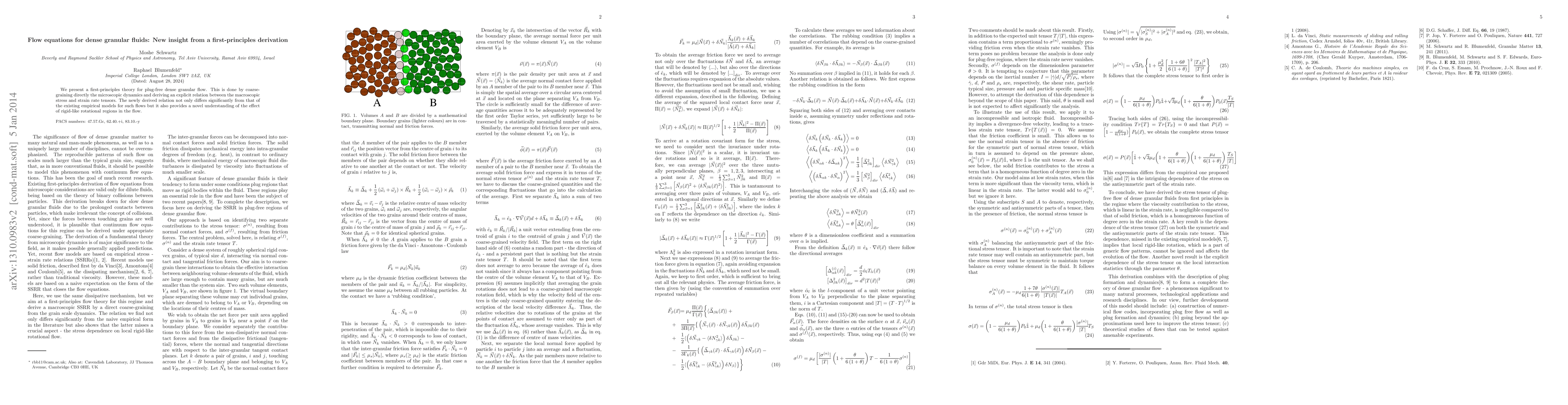 This paper introduces a first-principles theory for plug-free dense granular flow, derived by coarse-graining microscopic dynamics, resulting in a novel relation between stress and strain rate tensors that differs from existing empirical models and offers new insights into rotational regions in granular flows.