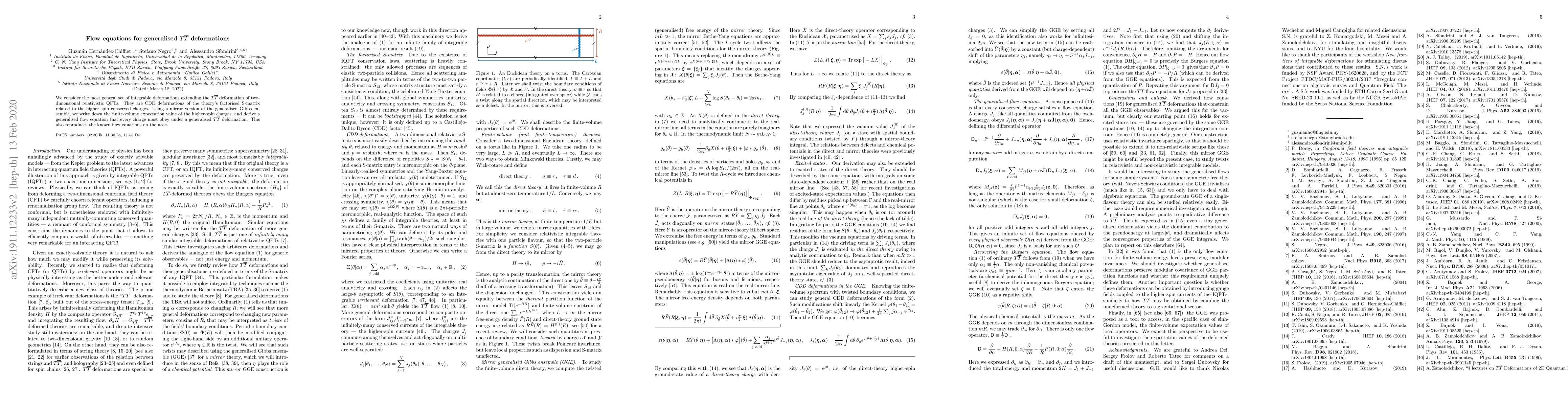 We consider the most general set of integrable deformations extending the $T\bar{T}$ deformation of two-dimensional relativistic QFTs. They are CDD deformations of the theory's factorised S-matrix related to the higher-spin conserved charges. Using a mirror version of the generalised Gibbs ensemble, we write down the finite-volume expectation value of the higher-spin charges, and derive a generalised flow equation that every charge must obey under a generalised $T\bar{T}$ deformation. This also reproduces the known flow equations on the nose.