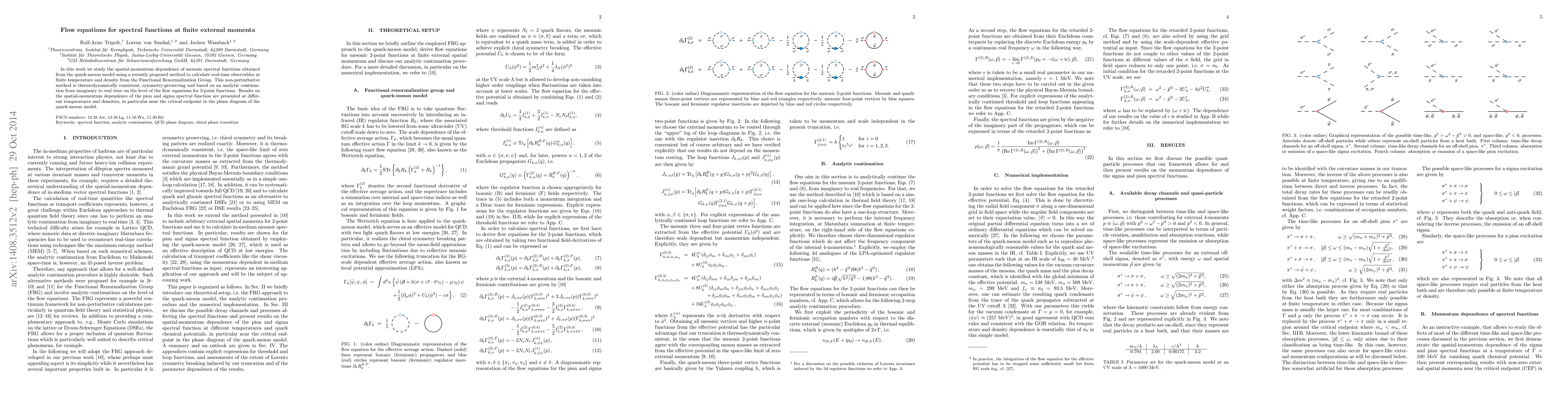In this work we study the spatial-momentum dependence of mesonic spectral functions obtained from the quark-meson model using a recently proposed method to calculate real-time observables at finite temperature and density from the Functional Renormalization Group. This non-perturbative method is thermodynamically consistent, symmetry-preserving and based on an analytic continuation from imaginary to real time on the level of the flow equations for 2-point functions. Results on the spatial-momentum dependence of the pion and sigma spectral function are presented at different temperatures and densities, in particular near the critical endpoint in the phase diagram of the quark-meson model.