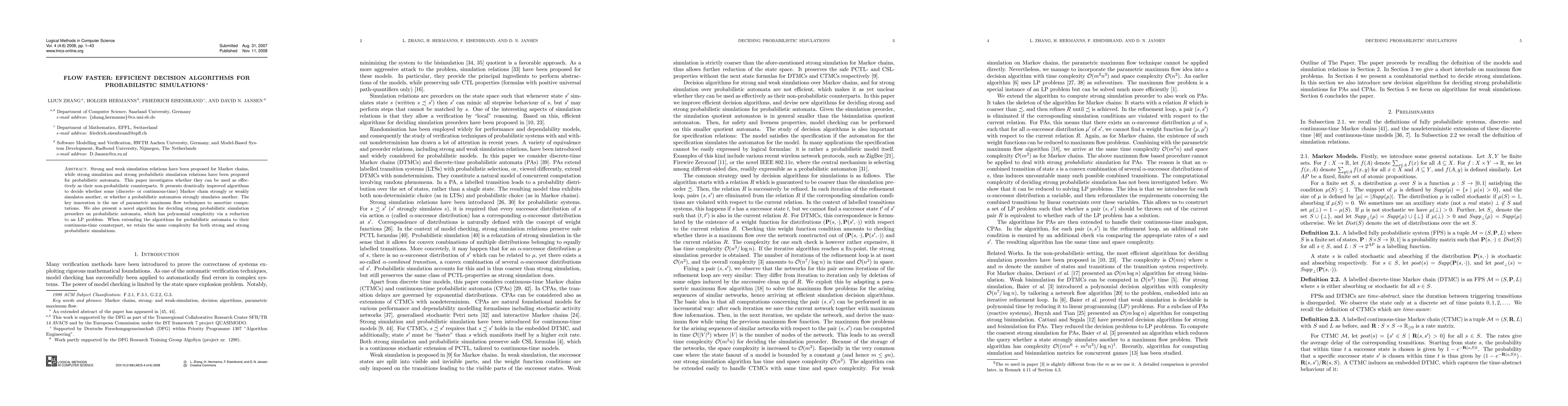 This paper presents efficient decision algorithms for probabilistic simulations of Markov chains and probabilistic automata, improving upon existing methods with parametric maximum flow techniques.
