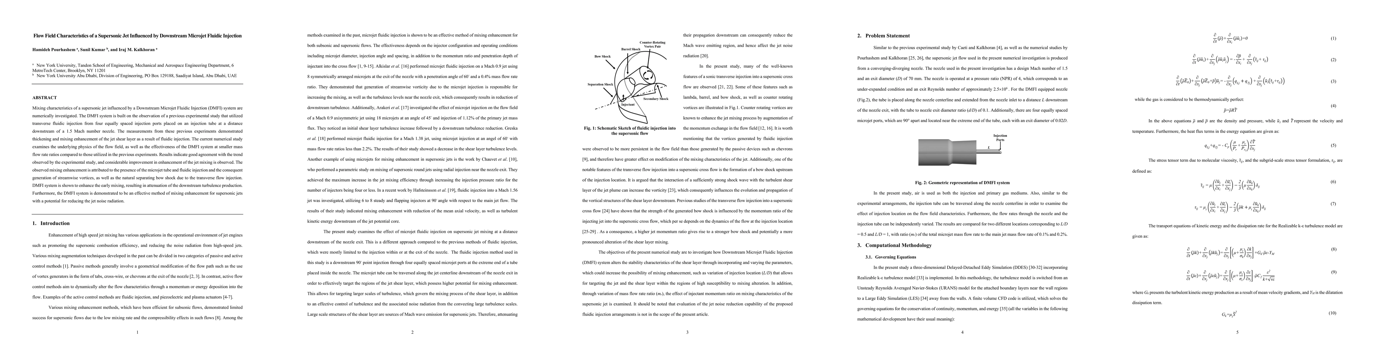This paper numerically investigates the mixing characteristics of a supersonic jet enhanced by a Downstream Microjet Fluidic Injection (DMFI) system, showing significant improvement in jet mixing and early turbulence attenuation, potentially reducing jet noise. The study confirms the effectiveness of DMFI at lower mass flow rates compared to previous experiments.