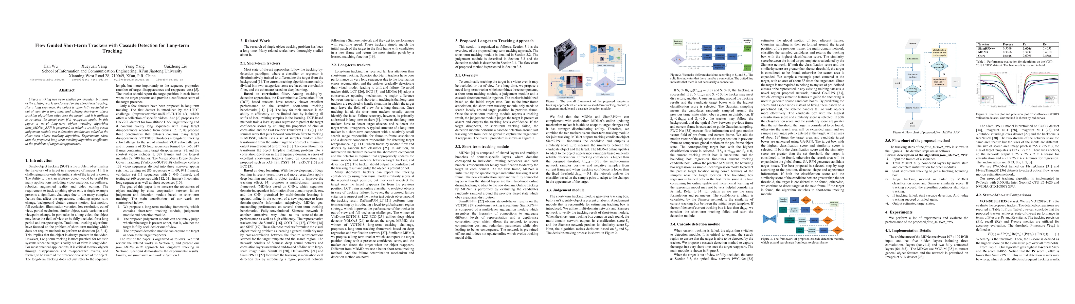 This paper proposes a novel long-term object tracking algorithm, flow_MDNet_RPN, which integrates a tracking result judgement module and a detection module to enhance short-term tracking capabilities. Experimental results demonstrate the effectiveness of the method in handling target disappearance and re-catching issues over long sequences.