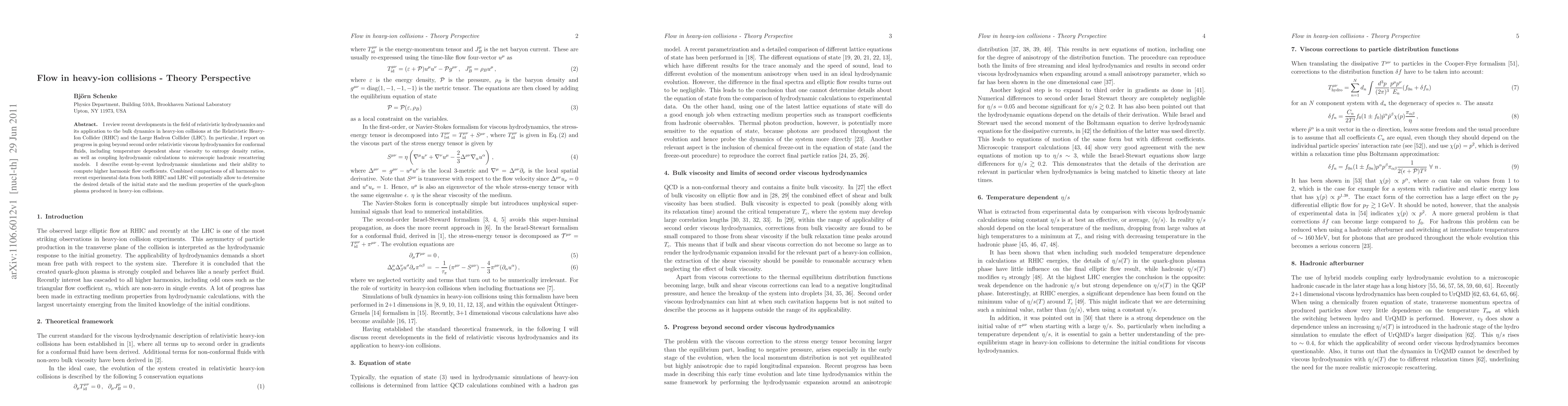 I review recent developments in the field of relativistic hydrodynamics and its application to the bulk dynamics in heavy-ion collisions at the Relativistic Heavy- Ion Collider (RHIC) and the Large Hadron Collider (LHC). In particular, I report on progress in going beyond second order relativistic viscous hydrodynamics for conformal fluids, including temperature dependent shear viscosity to entropy density ratios, as well as coupling hydrodynamic calculations to microscopic hadronic rescattering models. I describe event-by-event hydrodynamic simulations and their ability to compute higher harmonic flow coefficients. Combined comparisons of all harmonics to recent experimental data from both RHIC and LHC will potentially allow to determine the desired details of the initial state and the medium properties of the quark-gluon plasma produced in heavy-ion collisions.