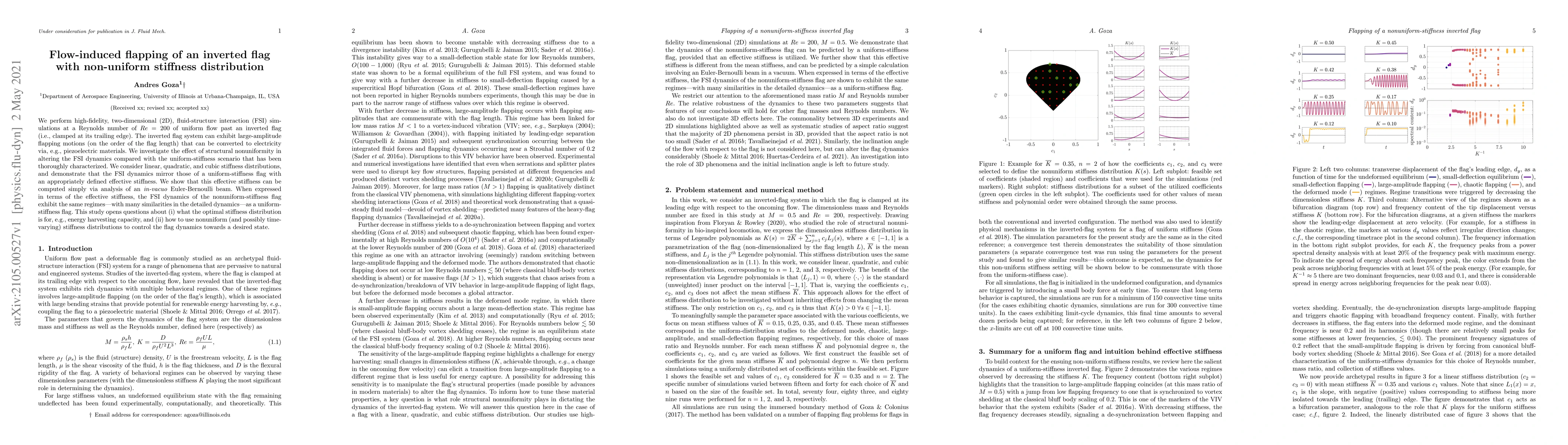 We perform high-fidelity, two-dimensional (2D), fluid-structure interaction (FSI) simulations at a Reynolds number of $Re=200$ of uniform flow past an inverted flag (i.e., clamped at its trailing edge). The inverted flag system can exhibit large-amplitude flapping motions (on the order of the flag length) that can be converted to electricity via, e.g., piezoelectric materials. We investigate the effect of structural nonuniformity in altering the FSI dynamics compared with the uniform-stiffness scenario that has been thoroughly characterized. We consider linear, quadratic, and cubic stiffness distributions, and demonstrate that the FSI dynamics mirror those of a uniform-stiffness flag with an appropriately defined effective stiffness. We show that this effective stiffness can be computed simply via analysis of an \emph{in-vacuo} Euler-Bernoulli beam. When expressed in terms of the effective stiffness, the FSI dynamics of the nonuniform-stiffness flag exhibit the same regimes -- with many similarities in the detailed dynamics -- as a uniform-stiffness flag. This study opens questions about (i) what the optimal stiffness distribution is for, e.g., energy harvesting capacity, and (ii) how to use nonuniform (and possibly time-varying) stiffness distributions to control the flag dynamics towards a desired state.