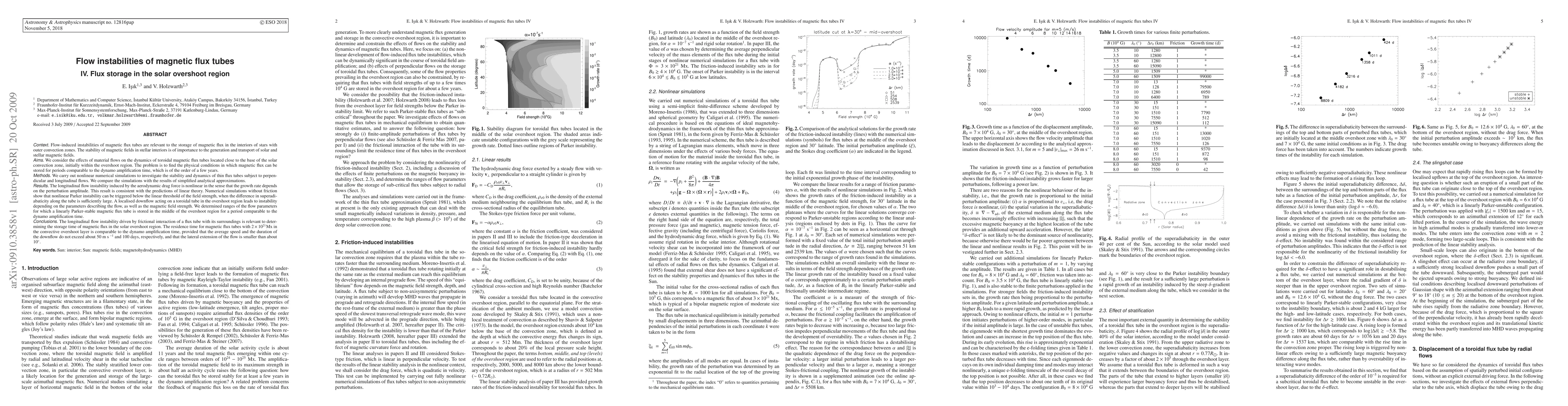 This paper investigates the dynamics of toroidal magnetic flux tubes near the solar convection zone's overshoot region, focusing on conditions that allow magnetic flux storage for several years. Nonlinear numerical simulations reveal that flux tubes can be stored if downflow speeds and durations remain below specific thresholds, enabling periods of stability comparable to the dynamo amplification time.