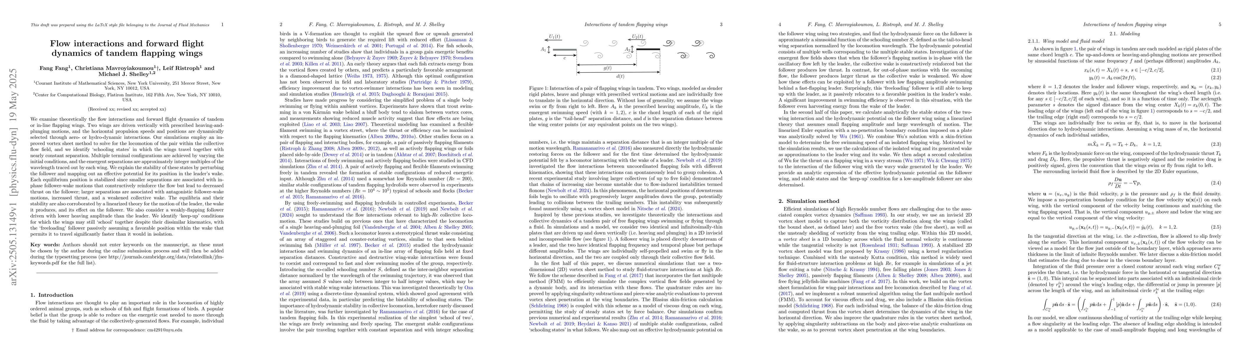 An improved vortex sheet method for simulating tandem flapping wings and identifying stable 'schooling states' through perturbation analysis and effective potential mapping.