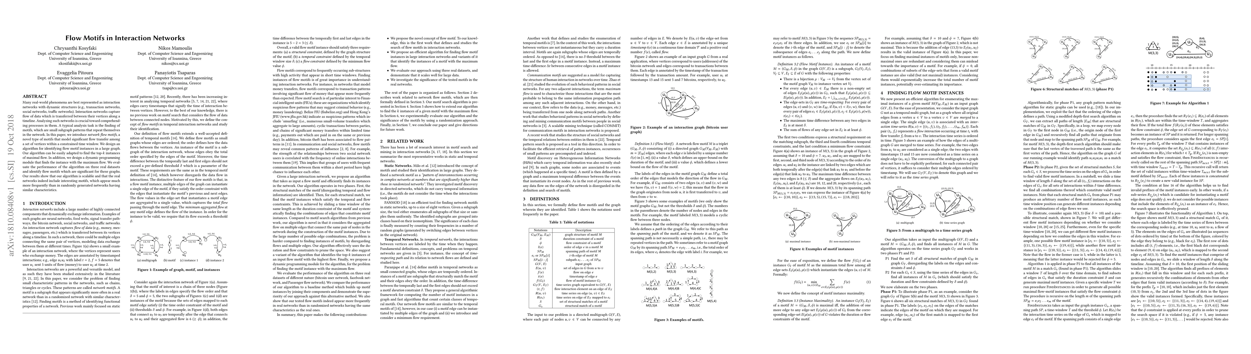 This paper introduces network flow motifs, a novel motif type capturing significant data flow within constrained time windows in dynamic interaction networks. The authors propose an efficient algorithm to identify and rank these motifs, demonstrating scalability and effectiveness through evaluations on real datasets.