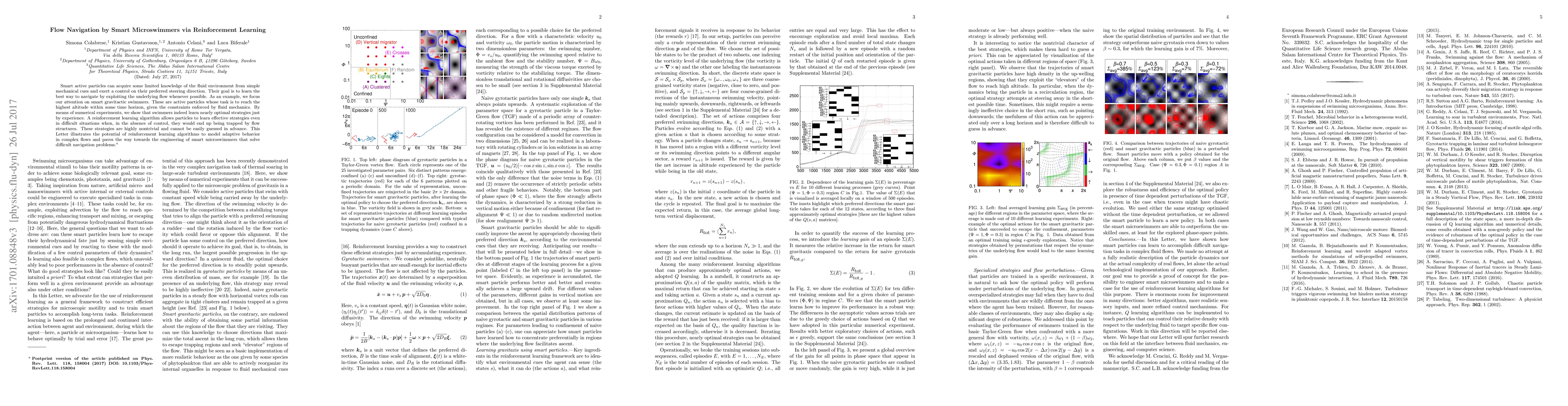 This paper explores how smart microswimmers, specifically gravitactic swimmers, use reinforcement learning to navigate fluid flows and reach higher altitudes. Through numerical experiments, it demonstrates that these swimmers can learn optimal navigation strategies through experience, even in challenging flow conditions.