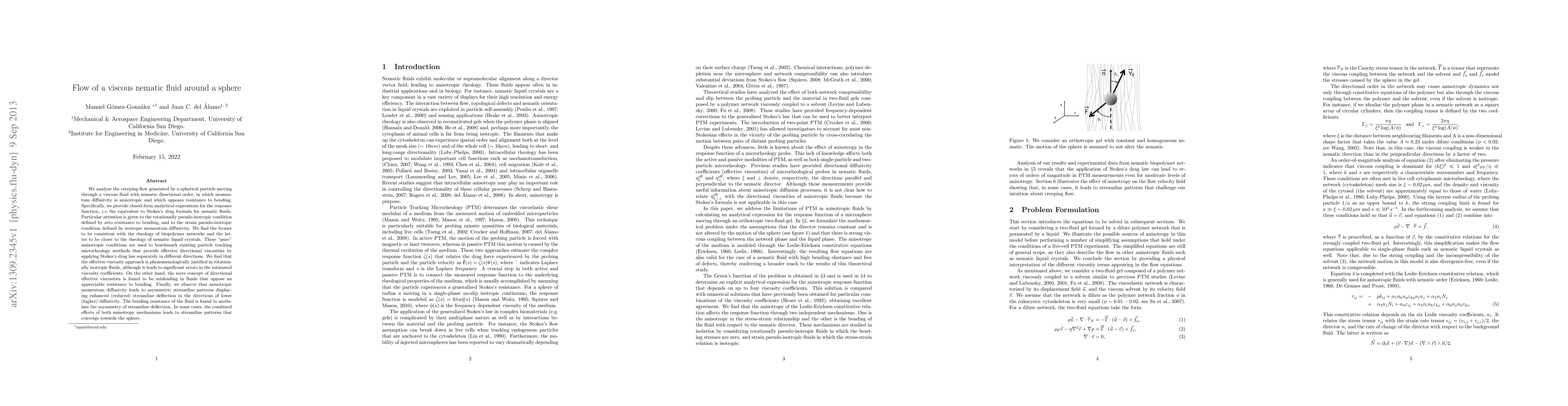 A study analyzes the flow of a viscous nematic fluid around a sphere, finding that anisotropic momentum diffusivity leads to asymmetric streamline patterns and that bending resistance modulates their asymmetry, with implications for understanding rheology in biopolymer networks and liquid crystals.