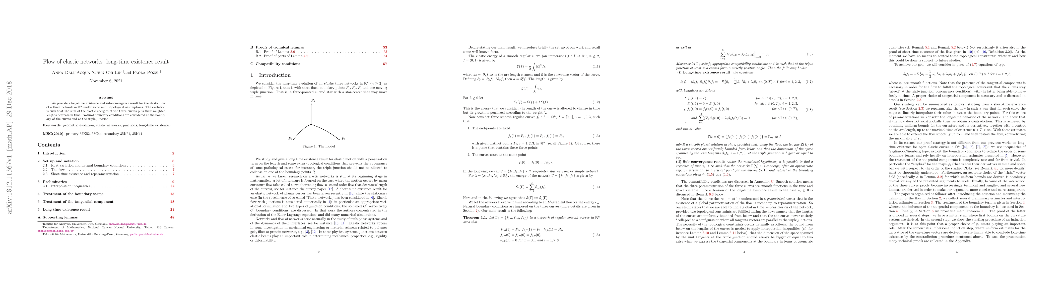 Researchers prove that elastic networks in R^n can exist indefinitely, decreasing in energy over time, under certain topological conditions.