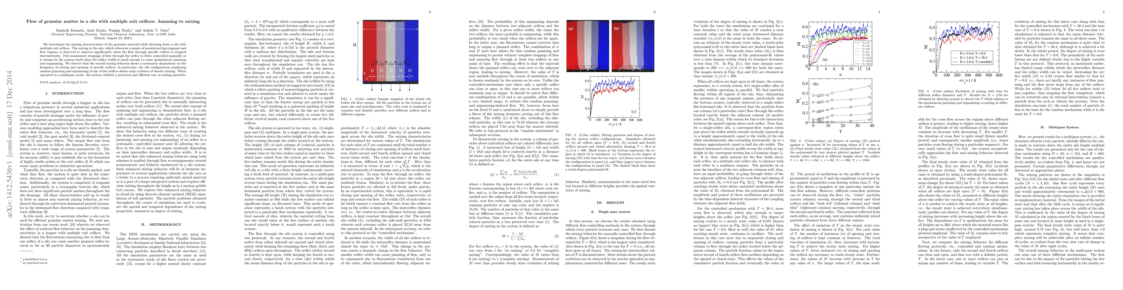 This study explores how intermittent stoppage of flow through specific orifices in a silo with multiple exit points enhances the mixing of dry granular material. The research finds that random jamming and unjamming of orifices leads to chaotic mixing, demonstrating an efficient method for particle mixing in a multipass system.